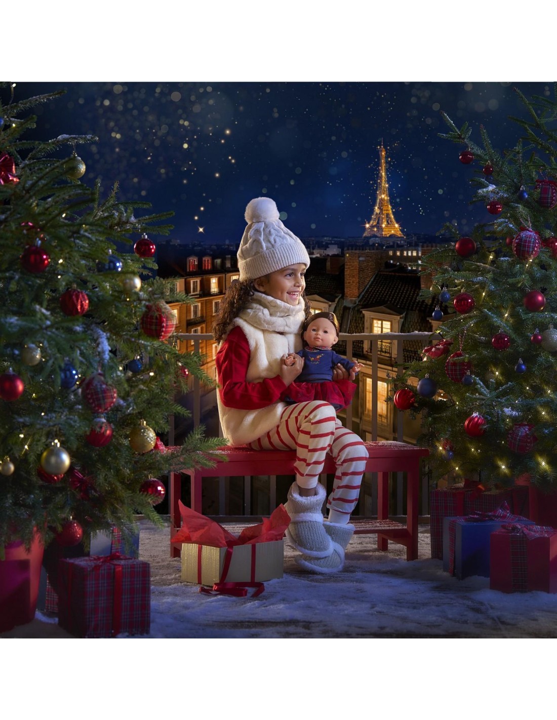 Perle Corolle en Fêtes célèbre Noël ! Cette poupée ma Corolle est habillée d'un joli sweat bleu marine avec un élégant col claudine au tissu écossais. Une sérigraphie pailletée d'un petit teckel en manteau écossais ajoute une note adorable sur son sweat.
