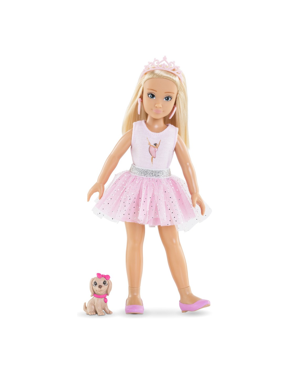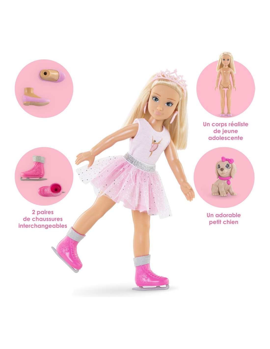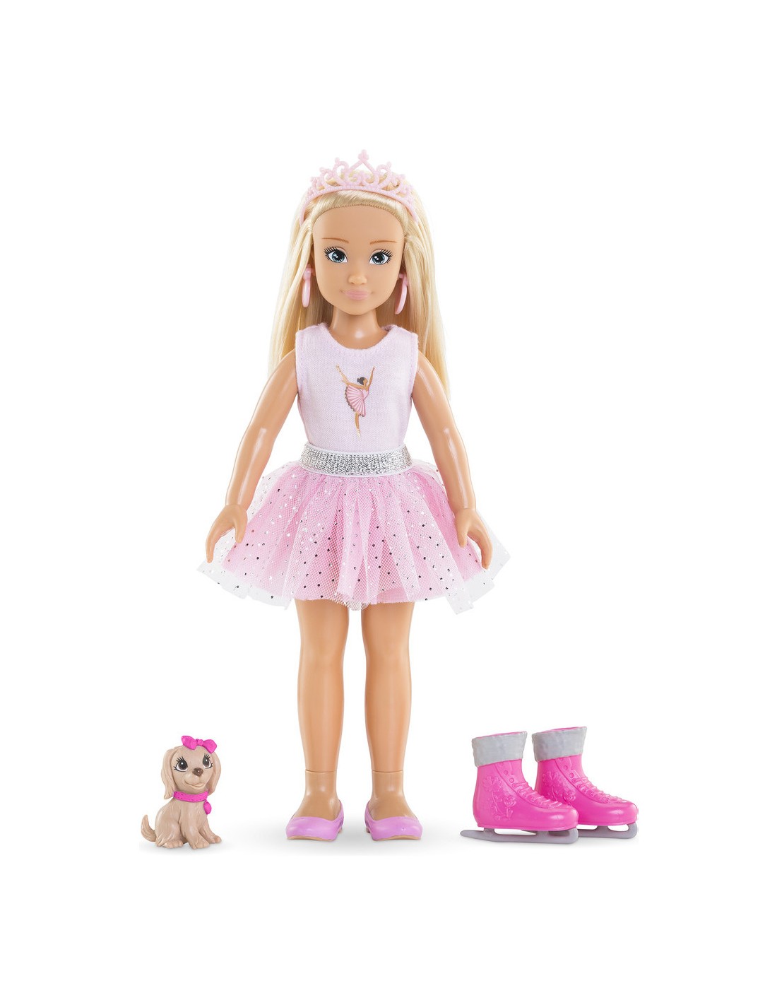 Valentine, c’est la sportive de la bande des Corolle Girls ! Elle pratique également le patinage et possède donc une paire de pieds-patins à glace amovibles. Pour compléter son style, Valentine possède également 1 tiare et 1 paire de boucles d'oreilles amovibles. Elle est accompagnée de son chien Tutu qui la suit partout.