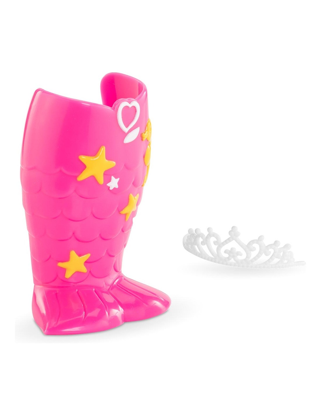 Elle est habillée d'un maillot de bain deux pièces scintillant et est coiffée d’un diadème. Pour la transformer en sirène : rien de plus simple ! Il suffit de clipser sa demi-queue sur ses jambes.