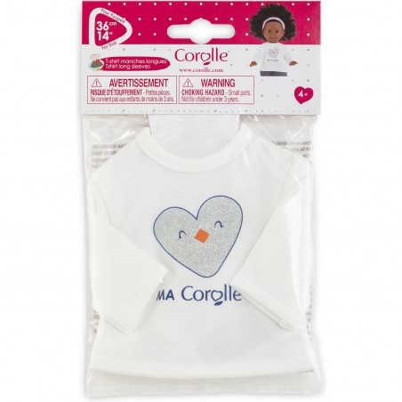 Un T-shirt Manches Longues pour poupée ma Corolle élégant avec une tête de pingouin dans un cœur argenté brillant.