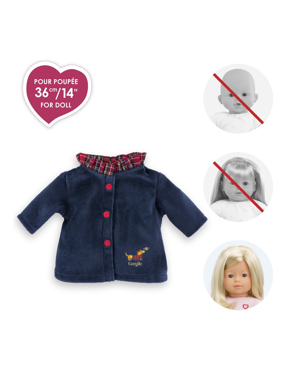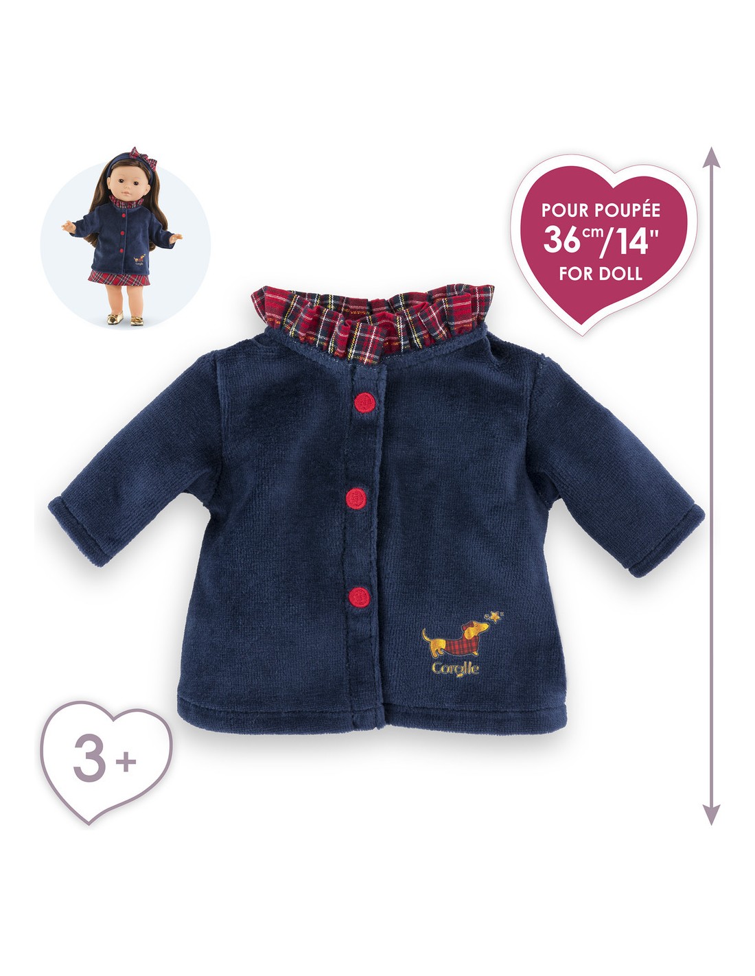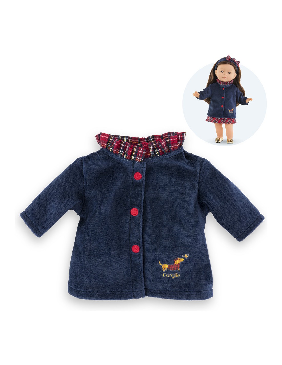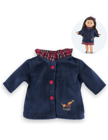 Le manteau Corolle en Fêtes pour poupée ma Corolle de 36 cm est idéal pour parfaire une tenue chic tout en se protégeant du froid ! Confectionné dans des matières douces et résistantes, il est facile à enfiler. Son col à volants en tissu écossais, ses petits boutons rouge brodés sur le devant ainsi que sa jolie sérigraphie pailletée d'un petit chien "Teckel" viennent apporter une touche d'élégance à ce manteau.