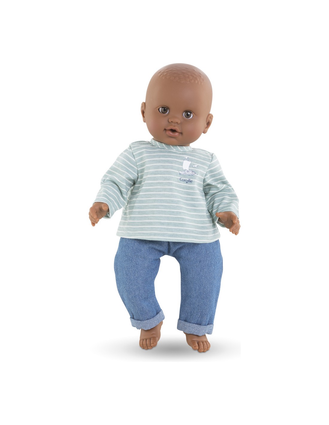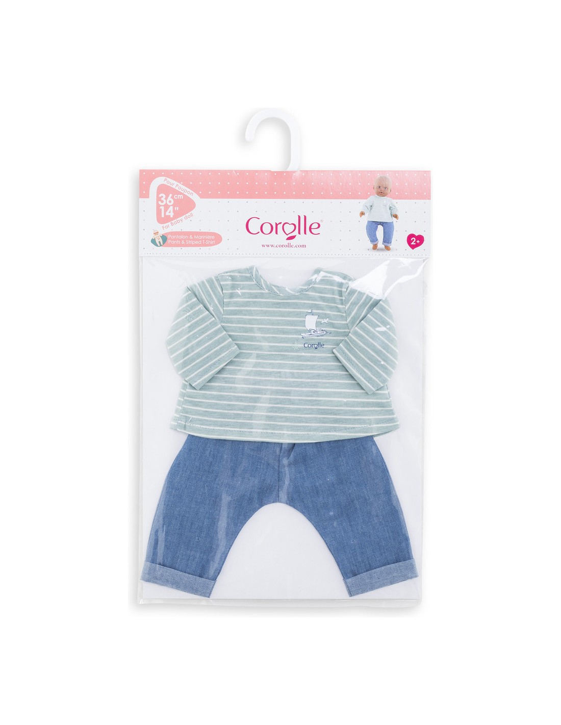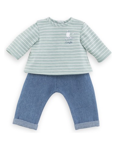Le Pantalon & la Marinière Bords de Loire est l'ensemble casual pour les grands poupons de 36cm mon grand poupon Corolle. Cet ensemble se compose d'un pantalon effet jean et d'une marini-re verte rayée blanche, avec un imprimé gabare, bâteau emblématique des bords de Loire. Confectionné dans des matières douces et résistantes, l'ensemble Pantalon & la Marinière est facile à enfiler grâce aux bandes auto-agrippantes, adaptées à la dextérité des petites mains des enfants dès 2 ans. Ce vêtement convient à tous les grands poupons de 36 cm de la gamme mon grand poupon Corolle, et fait partie d'une collection variée de vêtements et d'accessoires. mon grand poupon Corolle pour pouponner pour la première fois. Cette tenue est un jouet adapté pour les enfants dès 2 ans.
