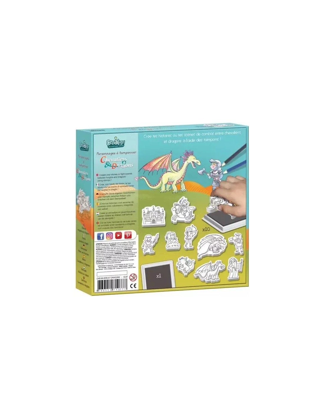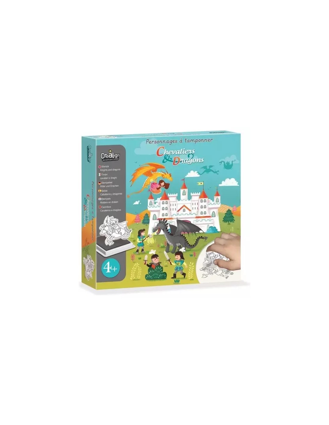 Des personnages à tamponner afin de créer ses histoires ou ses scènes de combat entre chevaliers et dragons pour réaliser ses plus beaux dessins !