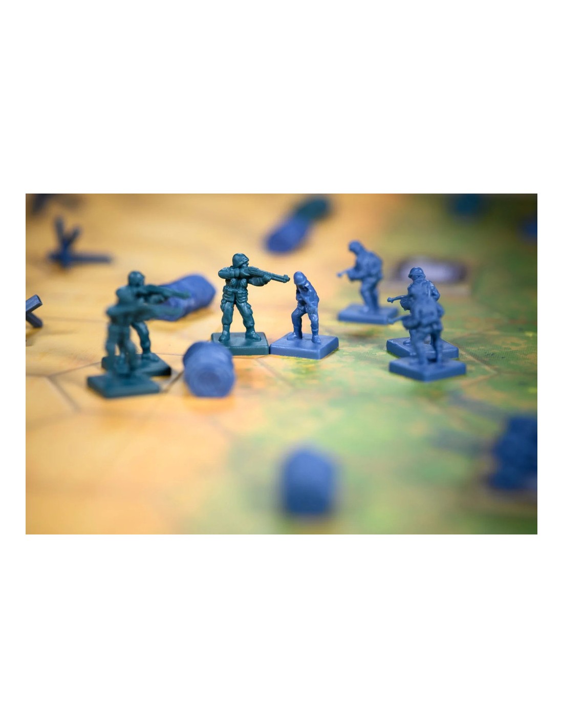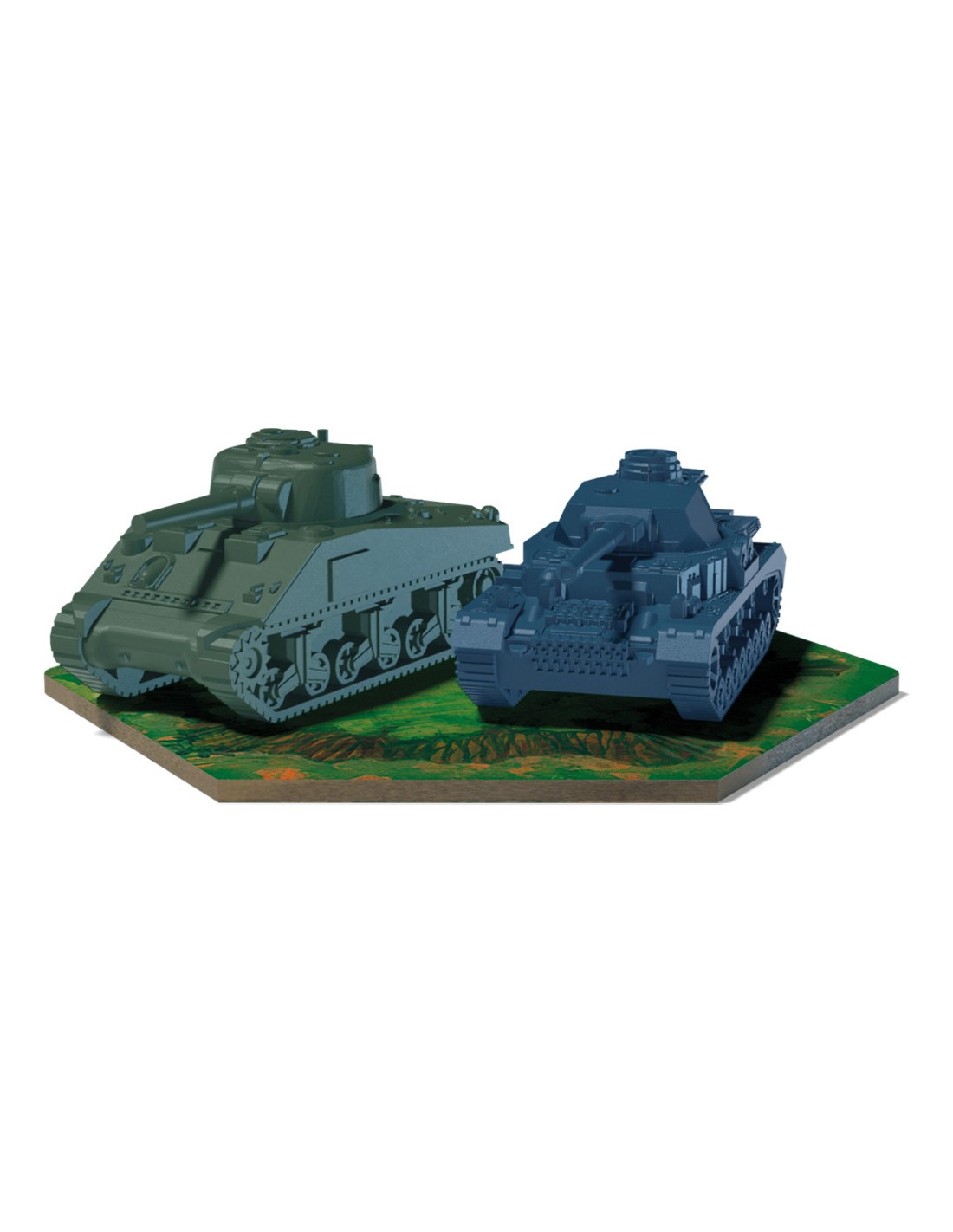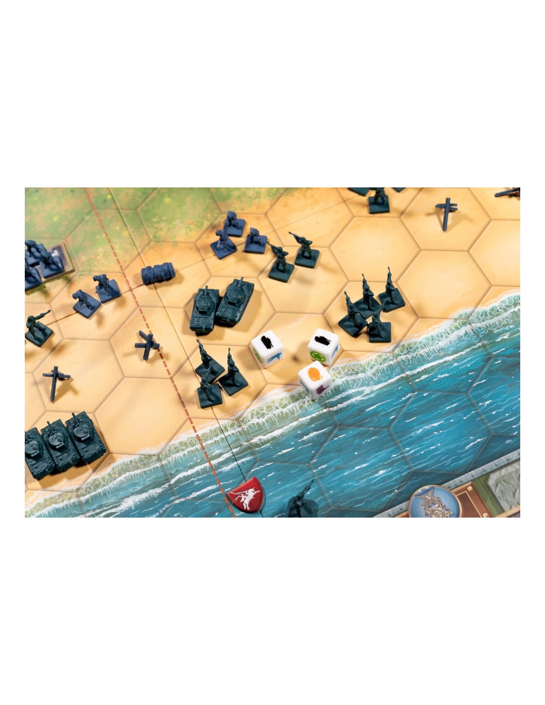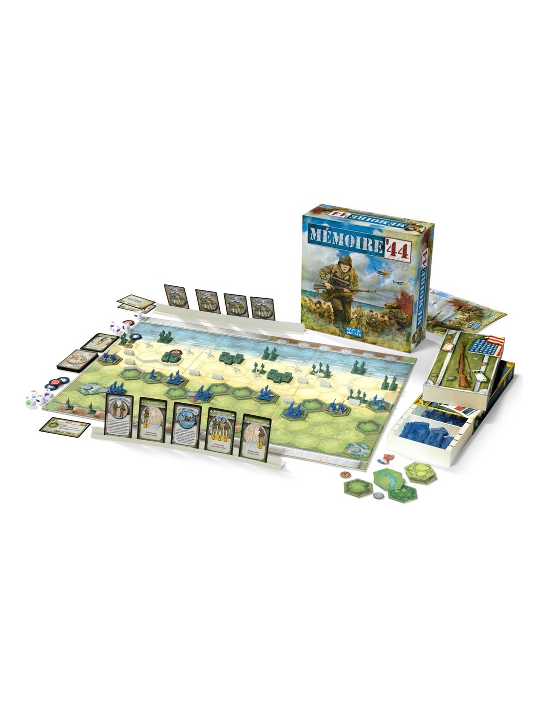 Contenu :1 plateau de champ de bataille à deux faces, 44 pièces hexagonales de terrain double face, 144 figurines d'armée Alliés/Axe, 36 obstacles, 2 porte-cartes, 1 paquet de 82 cartes, 8 dés spéciaux, 6 jetons "activation", 1 livret de règles et un livret de scénarios.