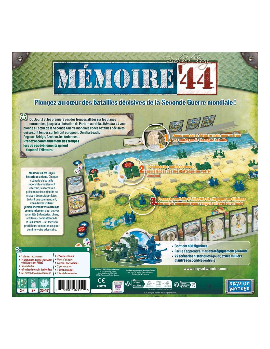 Memoir'44 revient dans une version rafraîchie, un peu plus de 20 ans après son lancement. Nouvelles illustrations, nouveaux éléments de rangement, amélioration des figurines... Tout a été pensé pour vous offrir une expérience de jeu encore plus fluide et immersive. Grâce à ses règles simples, ce grand classique des jeux de guerre offre le parfait équilibre entre accessibilité, profondeur tactique et narration historique.