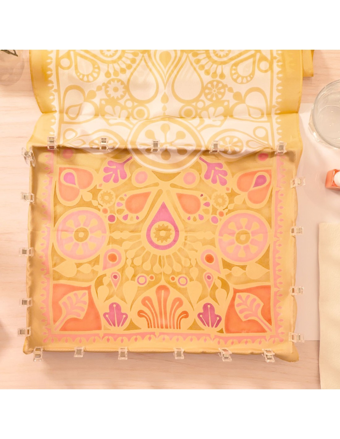 - Lancez-vous dans l’art de la peinture sur soie et donnez vie à un foulard unique, en laissant librement se diffuser les couleurs, à votre rythme, chez vous.