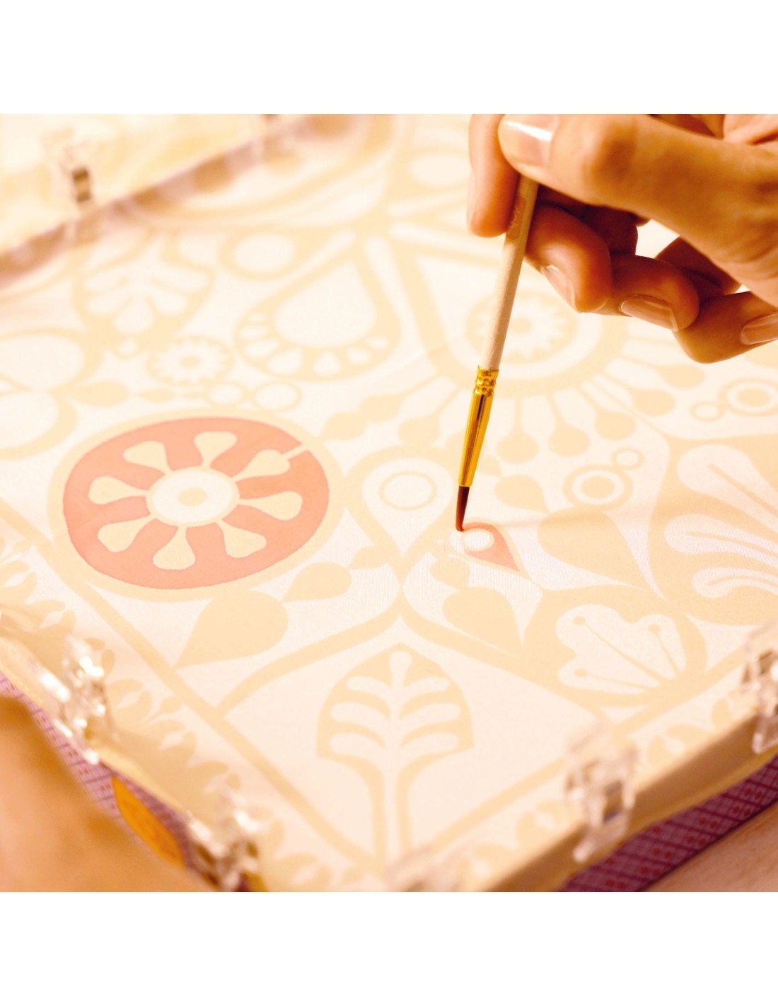 - Une jolie boîte décorée, pour mettre de côté son activité entre deux moments de création, puis la transformer en boîte à trésors.