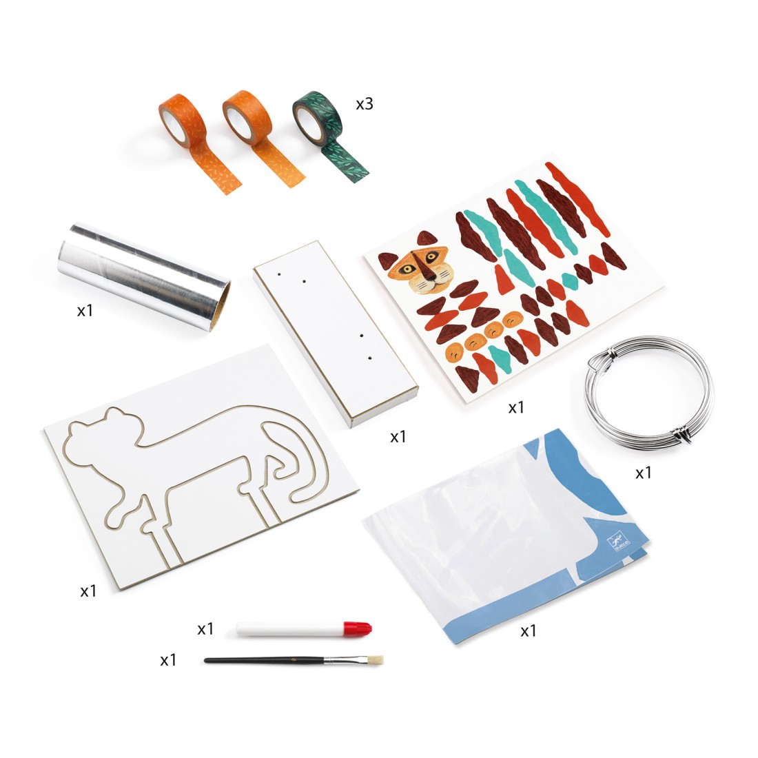 Un coffret pour s’initier à l’art de la sculpture en réalisant un tigre tel un véritable maître ! Guidé par le gabarit de carton, l’enfant forme les contours de l’animal avec du fil métallique qu’il positionne ensuite sur le piédestal prévu à cet effet.