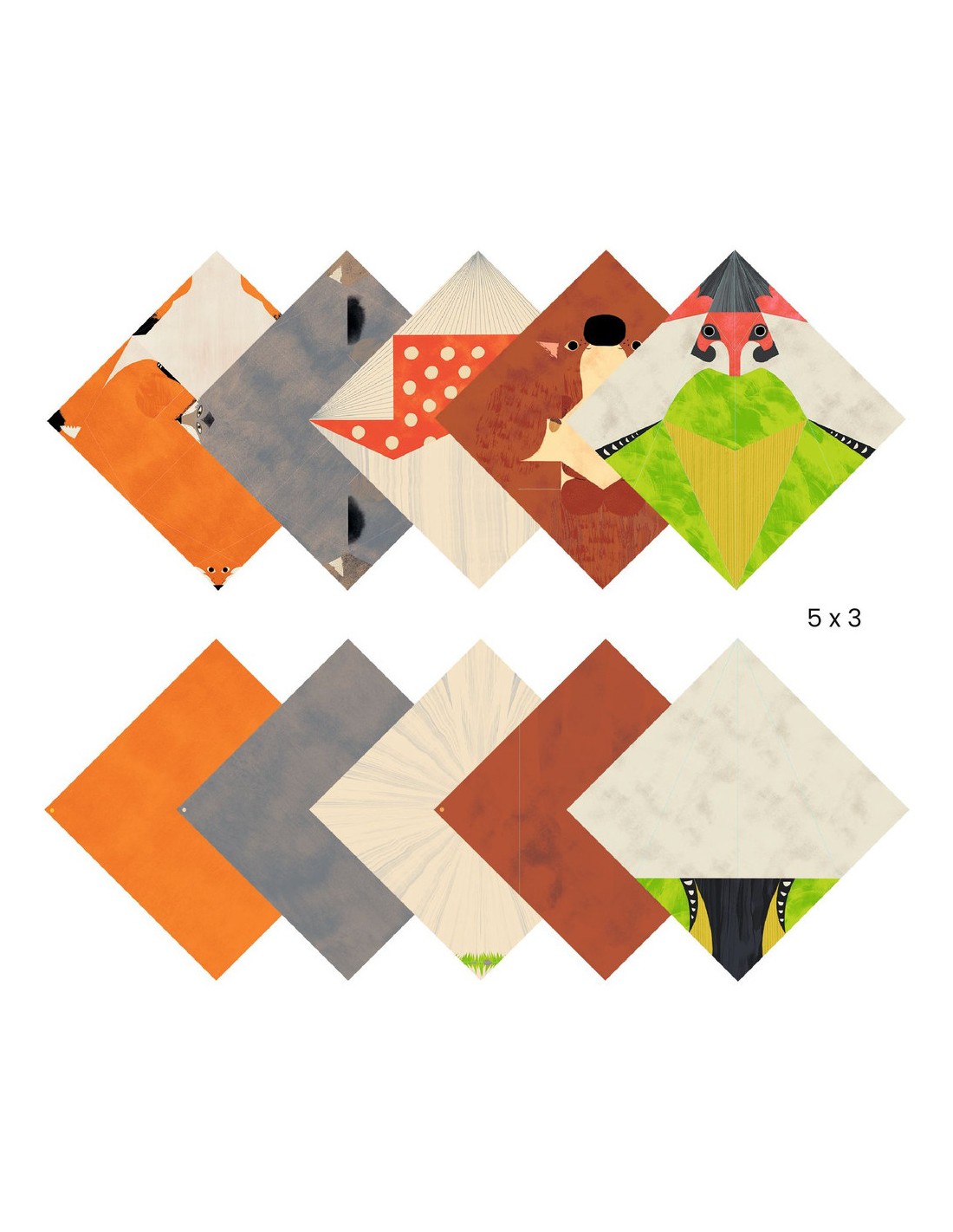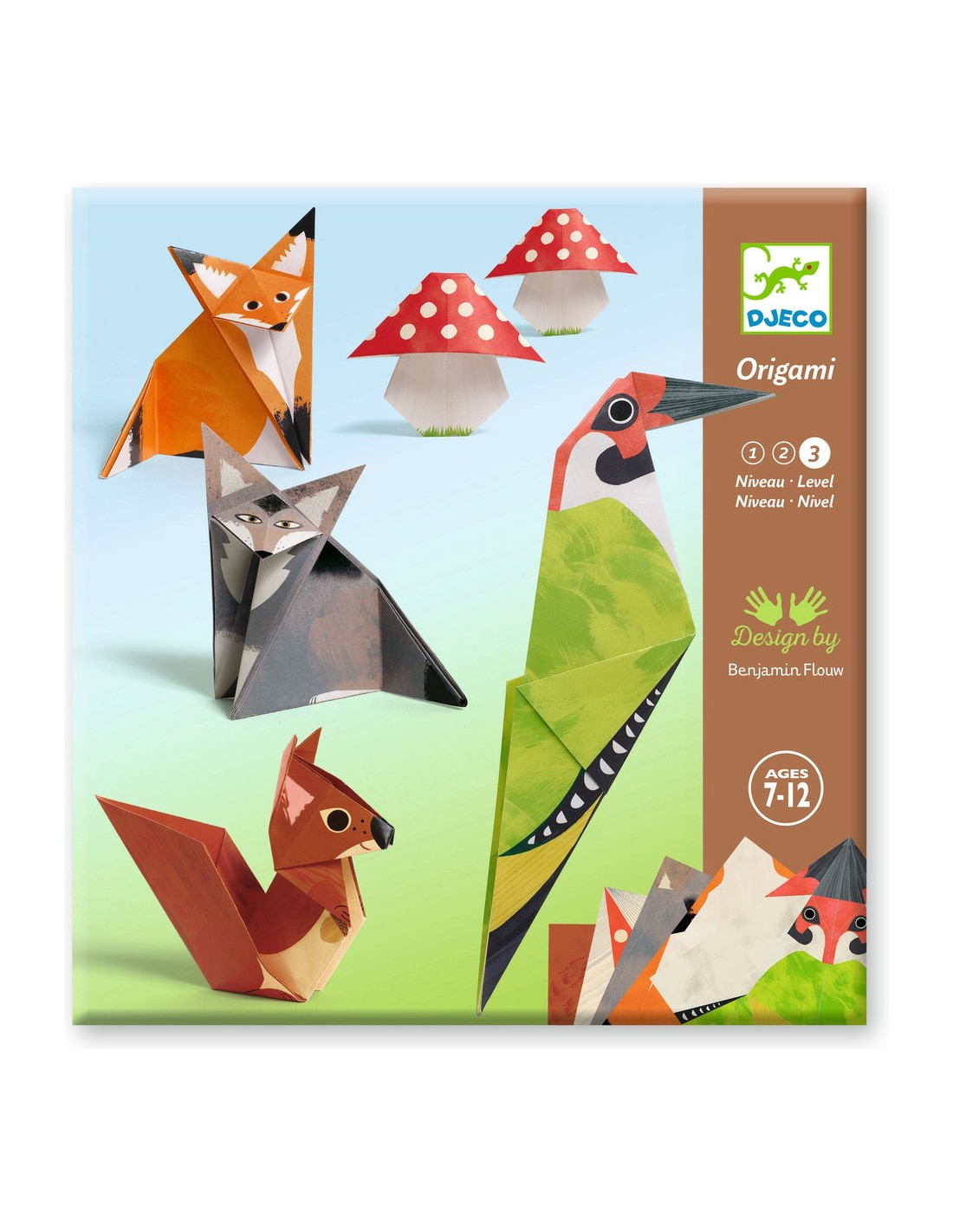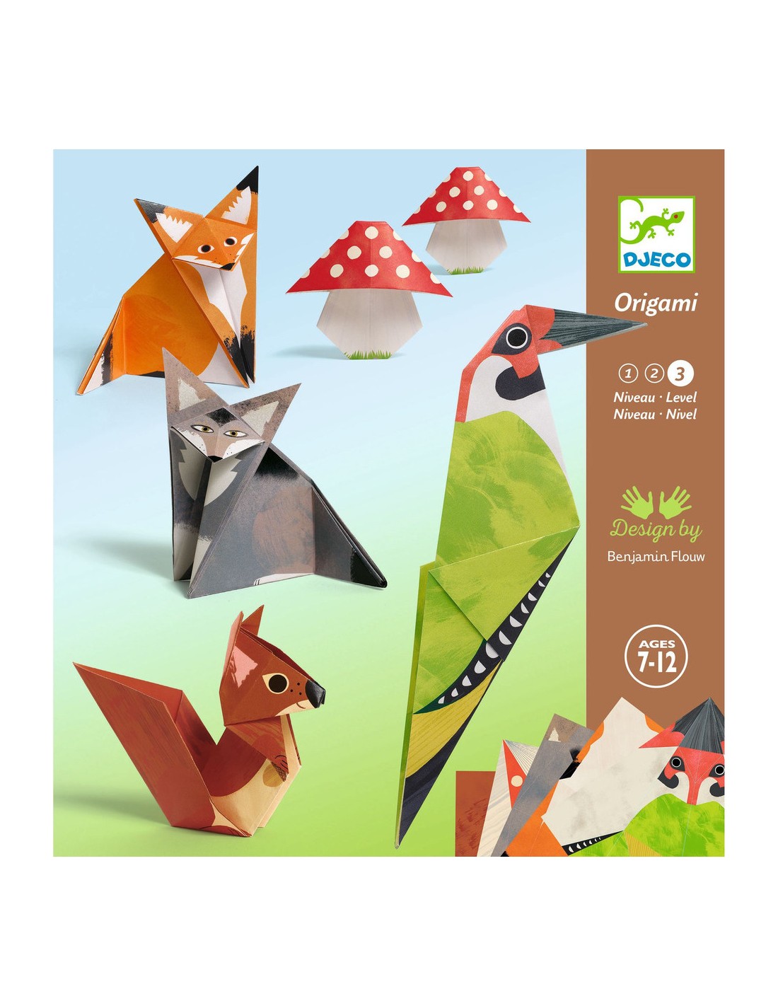 Rendez-vous pour une balade en forêt avec cette pochette d’origami. Promenons-nous dans les bois pour observer loup, renard, écureuil et pivert parmi les champignons. En suivant les explications du livret et les tracés indiqués, l’enfant effectue les pliages pour réaliser 24 animaux en papier !