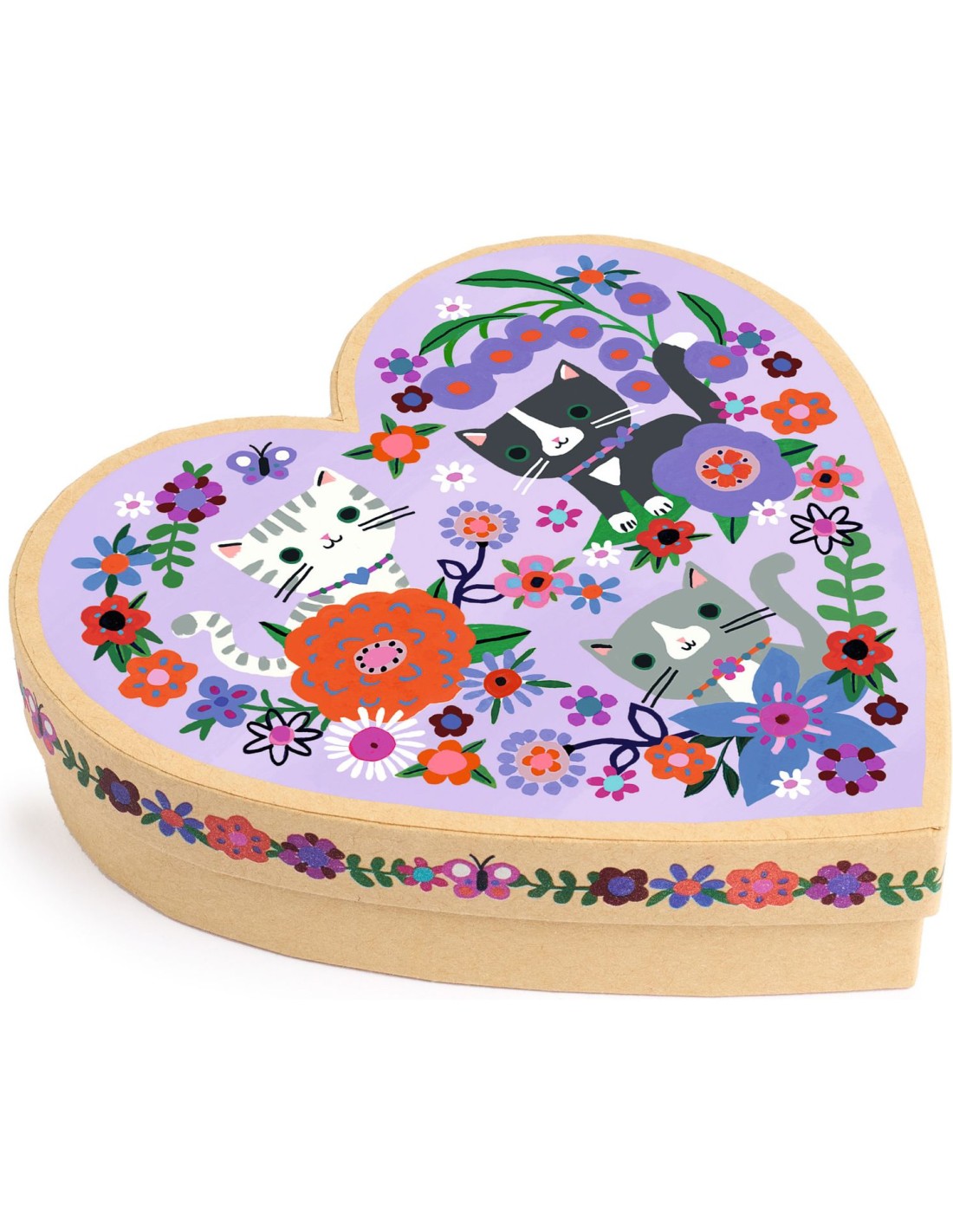Cette jolie boîte en forme de cœur décorée de petits chats tout mignons cache 3 adorables bracelets.