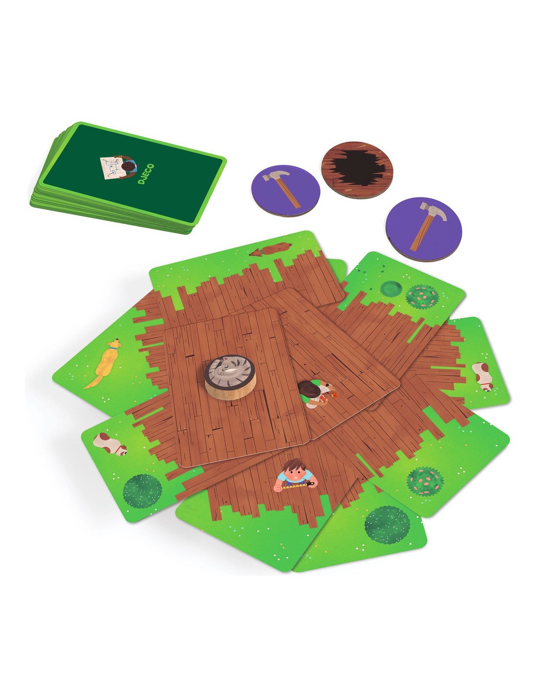 Mettez votre tenue de chantier et réalisez votre rêve : construire la plus grande cabane ! Mais attention au chat et aux chiens, soyez précis et délicats pour qu’elle ne s’écroule pas avant que les 3 marteaux ne frappent. Un jeu coopératif, rapide et plein de surprises à chaque partie !