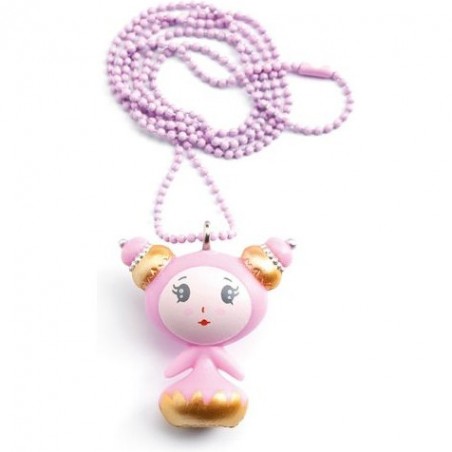 - 1 collier composé de 1 pendentif figurine en plastique (3 cm), 1 chaîne en métal doré ajustable (55 cm) et 1 fermoir.