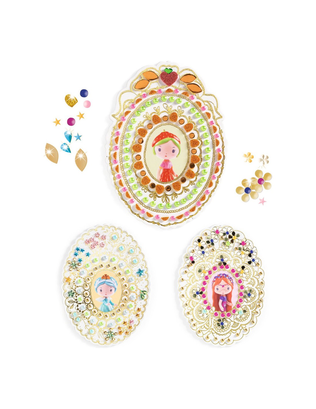 Contenu : 3 médaillons en carton épais imprimé avec un estampage doré, à décorer avec : gemmes, perles, mosaïques pailletées, effet métallisé.