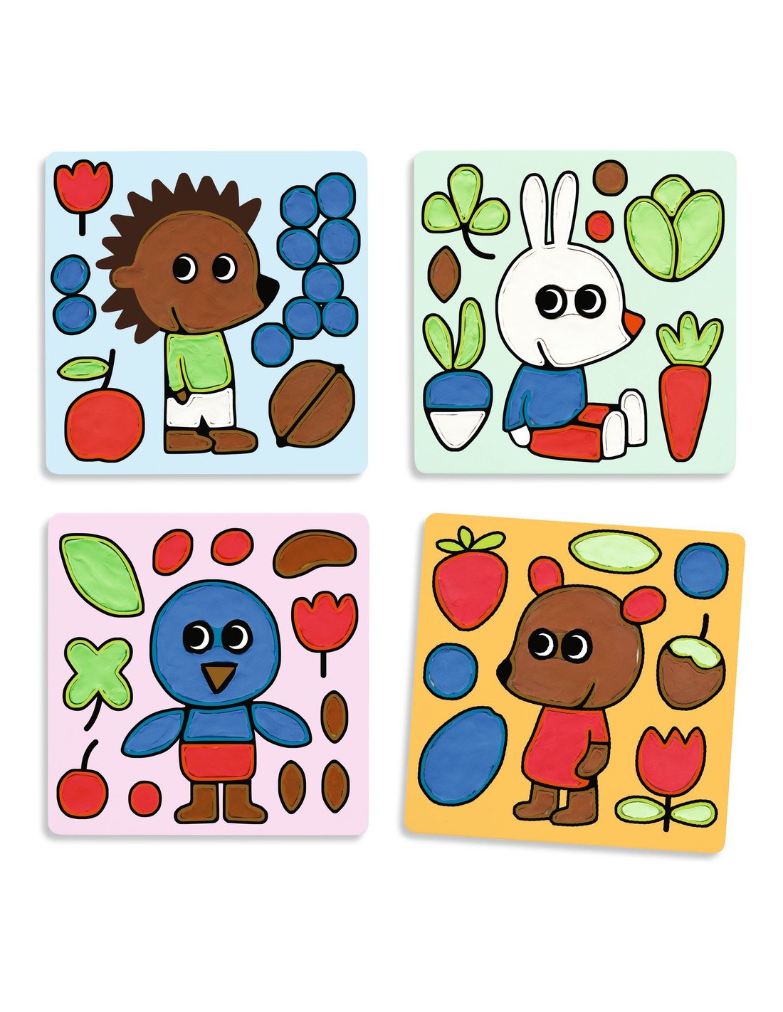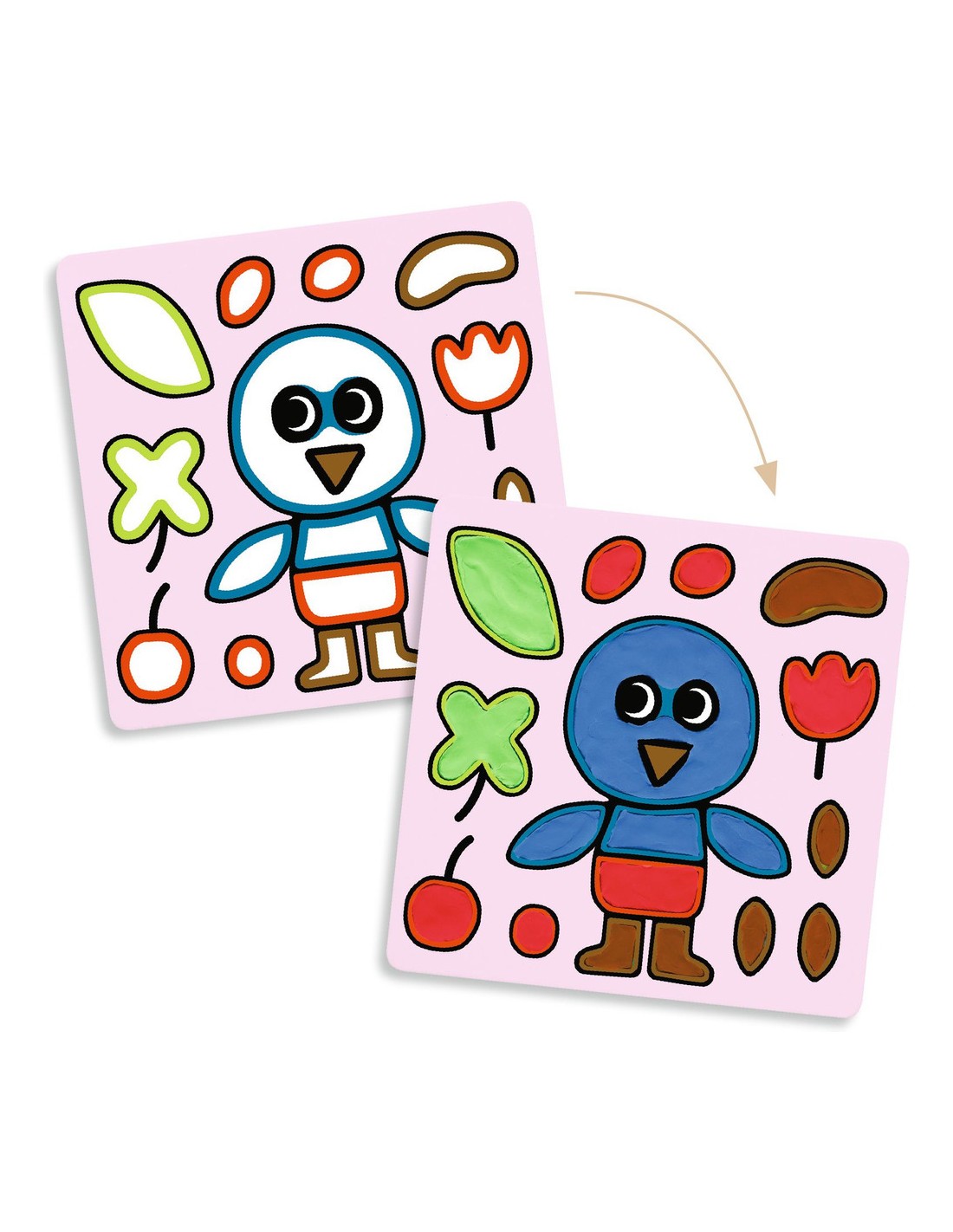 Grâce aux 4 planches creusées et aux 5 pots de pâte à modeler séchante, l’enfant remplit simplement chaque zone pour révéler de jolies illustrations en relief. Rapide à installer, propre à utiliser et accompagnée d’un livret clair, cette activité sensorielle développe la motricité fine et la perception des couleurs… pour créer, manipuler et s’amuser sans se salir.