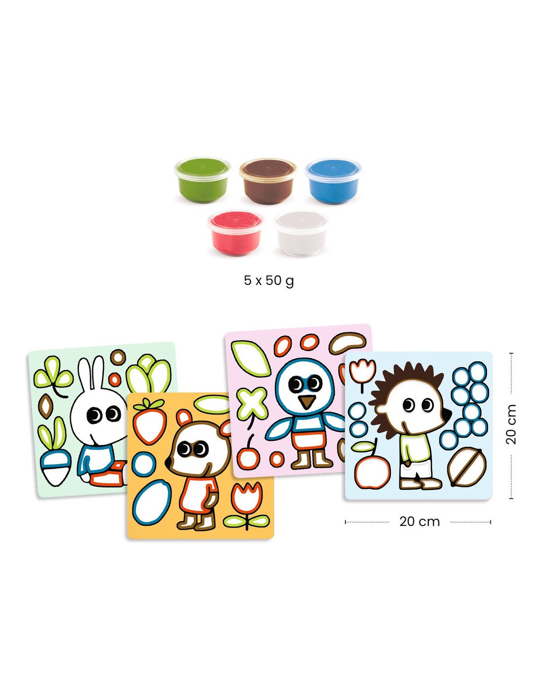 Contenu : 4 planches creusées, 5 pots de pâte à modeler séchante et 1 livret.