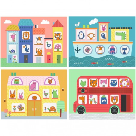 - Contenu : 12 feuilles de papier calque illustrées (28 x 21 cm), 15 cartes calques (10 x 7 cm), 1 crayon avec gomme, 4 feutres (jaune, rose, vert et bleu) et 1 guide étape par étape.