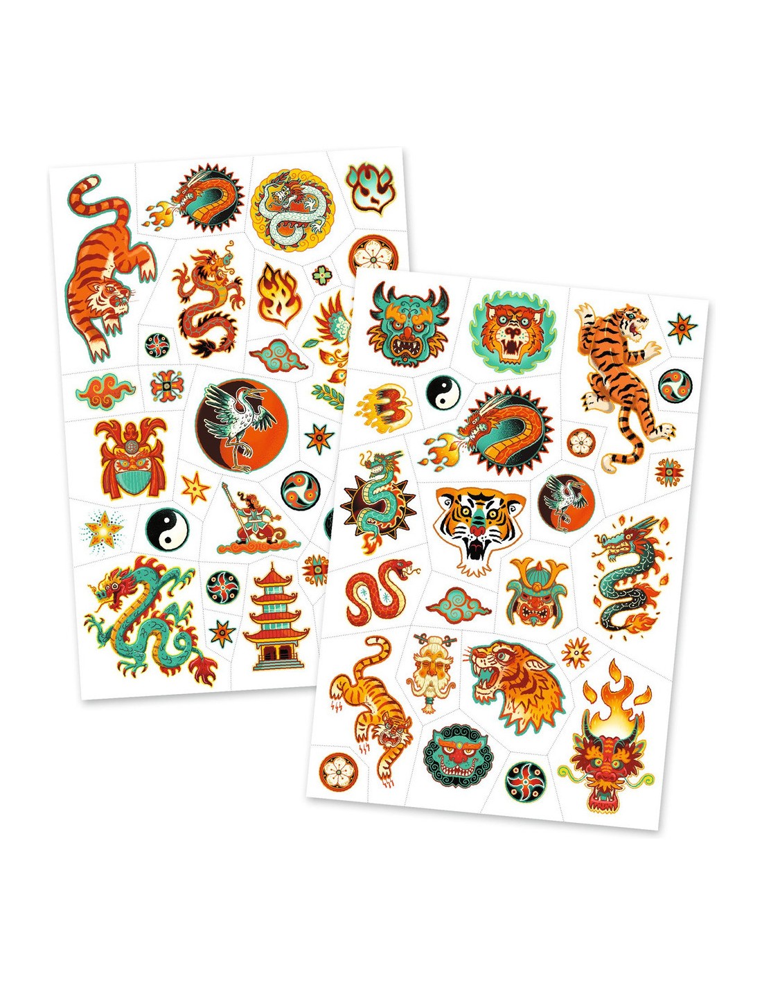 Deux planches de tatouages temporaires aux motifs inspirés des arts martiaux asiatiques pour avoir l'allure d'un vrai guerrier ! Faciles à utiliser, ils sont prédécoupés et s’appliquent avec un peu d’eau. Testés dermatologiquement.