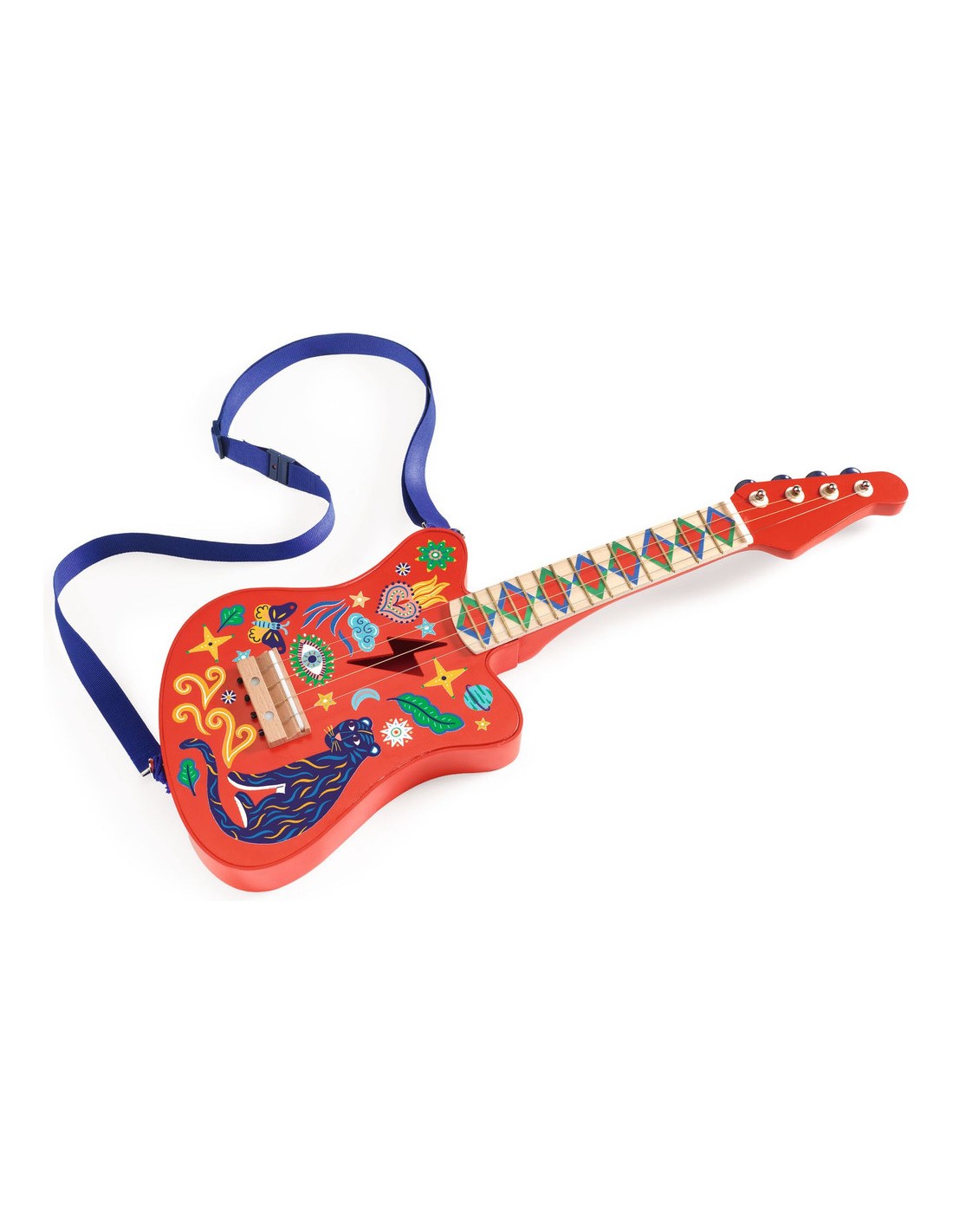 Une vraie rock star en herbe ! Superbe guitare au look résolument rock pour gratter des mélodies endiablées. Grâce à sa bandoulière, elle se porte facilement pour jouer comme sur une vraie scène ! Un jouet digne d'un instrument avec 4 cordes métalliques. Le cadeau idéal pour les jeunes guitaristes dès 3 ans.