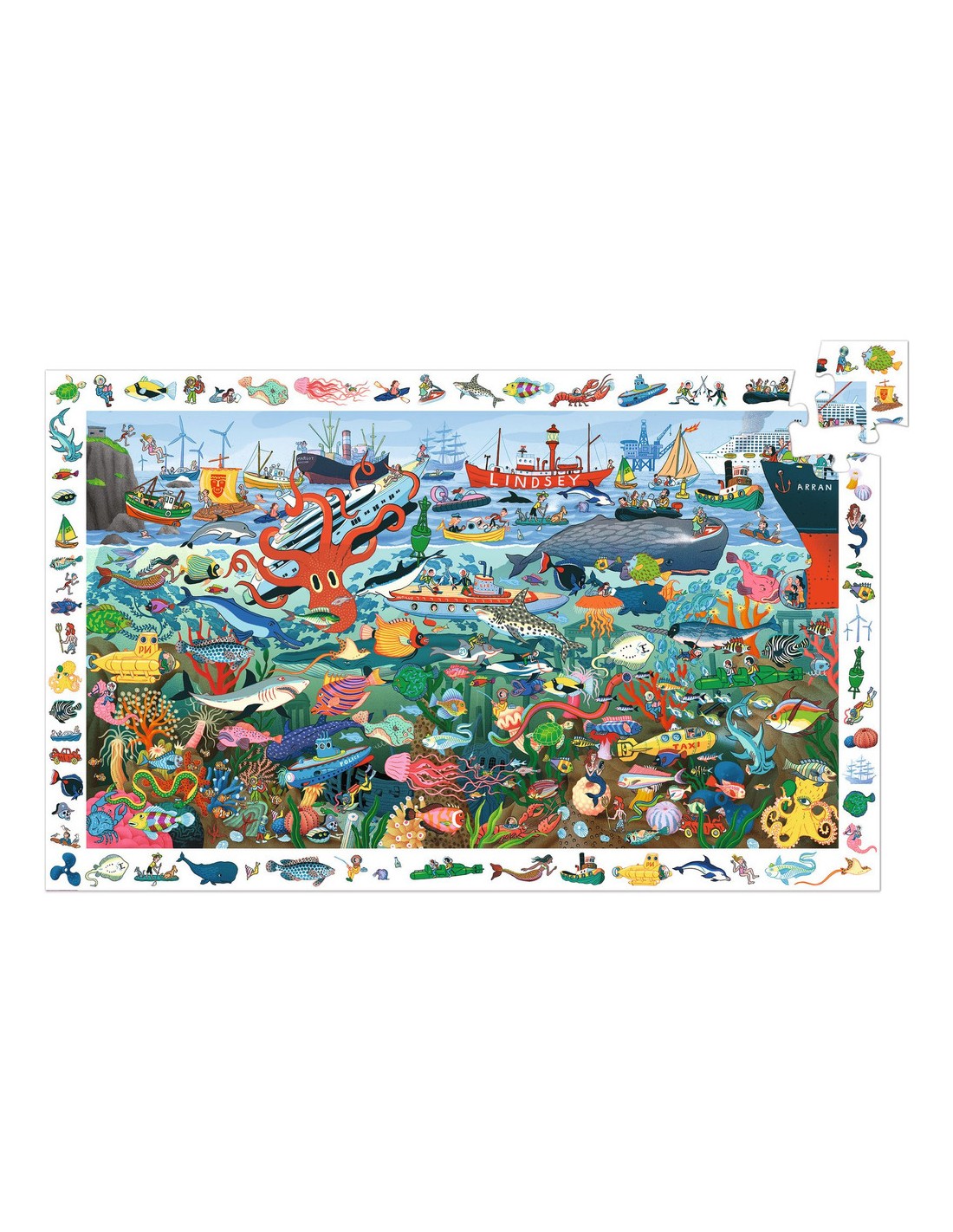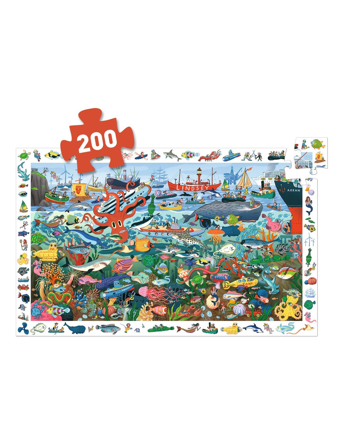 Un puzzle observation de 200 pièces pour découvrir les secrets de la mer. L’enfant crée son puzzle puis s’amuse à retrouver dans l’image les éléments de la frise.