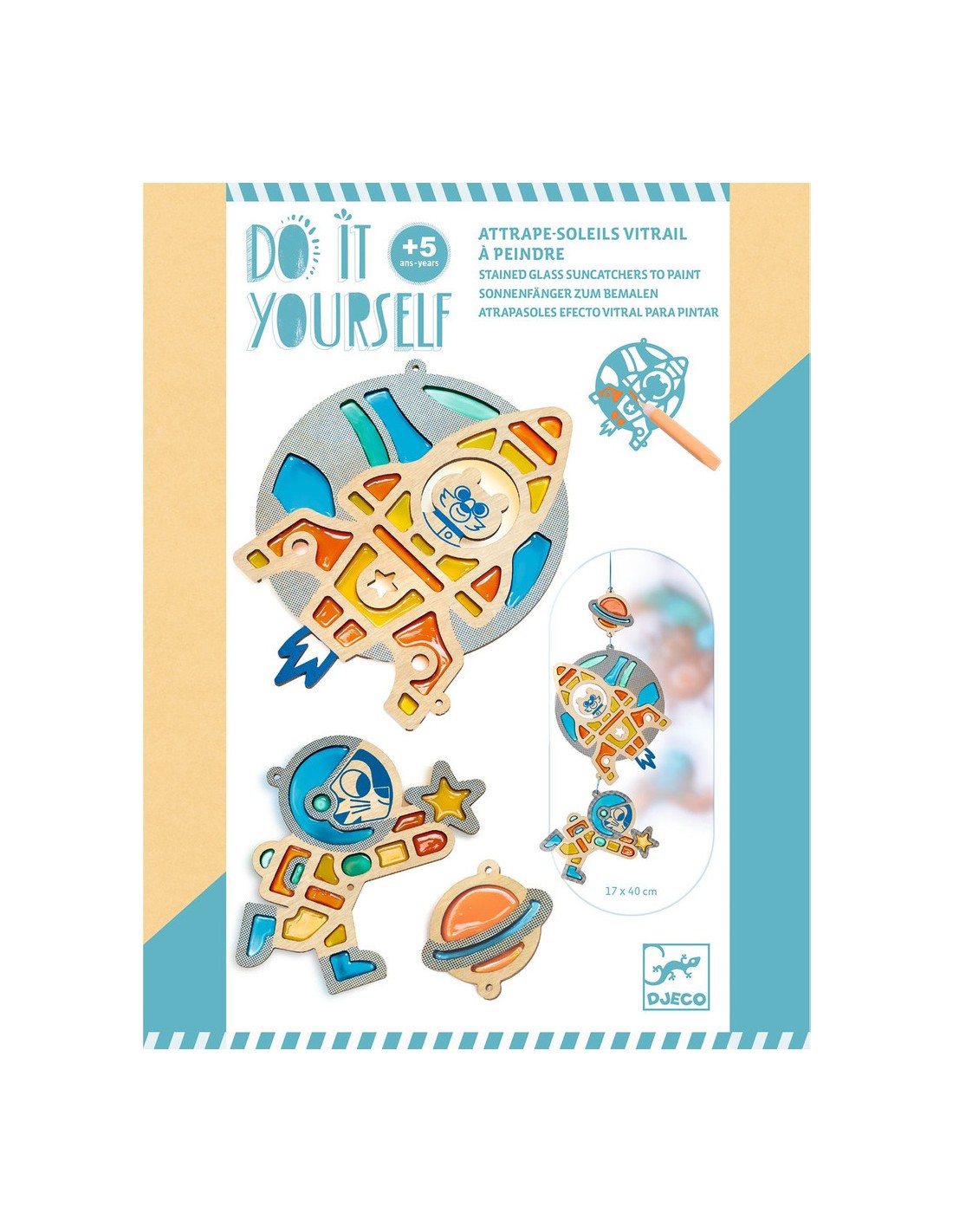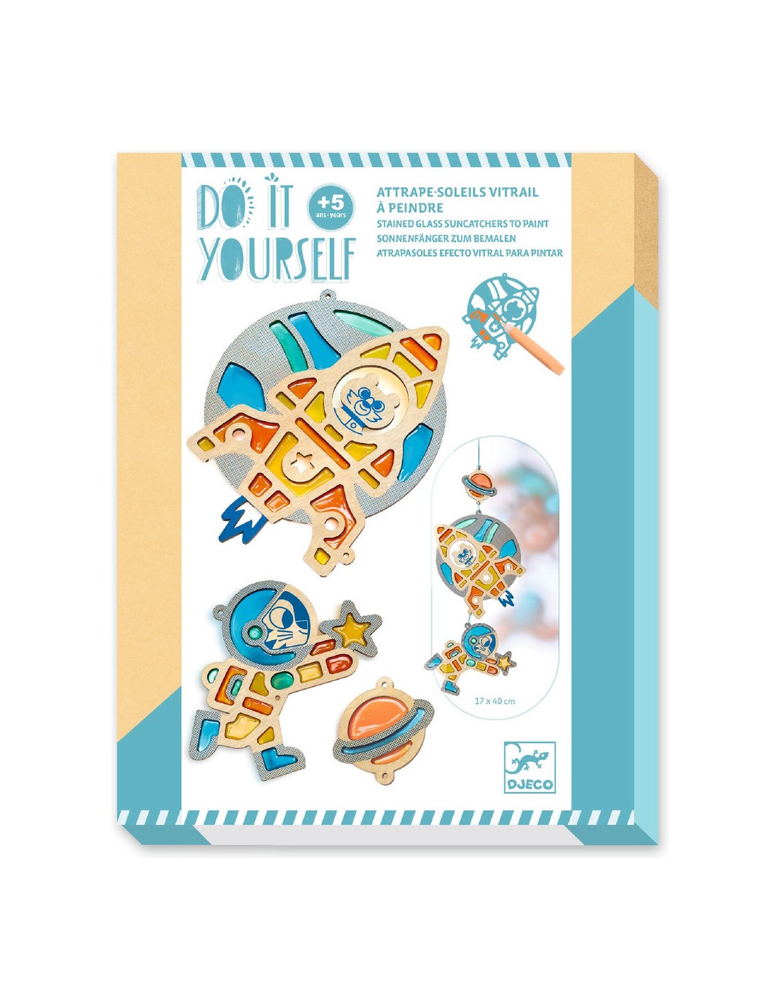Un atelier créatif pour s'initier à la technique du vitrail et créer des attrape-soleils avec des couleurs vives laissant passer la lumière. L'enfant remplit de peinture vitrail les zones évidées dans les pièces en bois, couleur après couleur, en suivant les modèles fournis. Une fois la peinture séchée, il n'y a plus qu'à décoller les suncatchers des supports de protection fournis et à ôter les films protégeant le bois d'éventuelles traces de peinture.