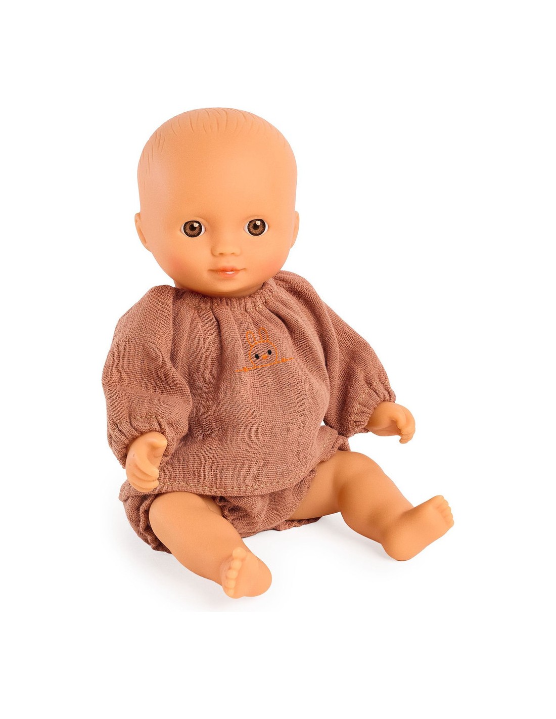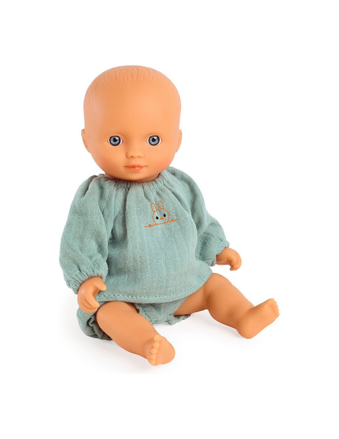 Contenu : 1 poupée de 20 cm corps tout vinyle, 1 tenue (blouse manches longues et bloomer en gaze de coton).