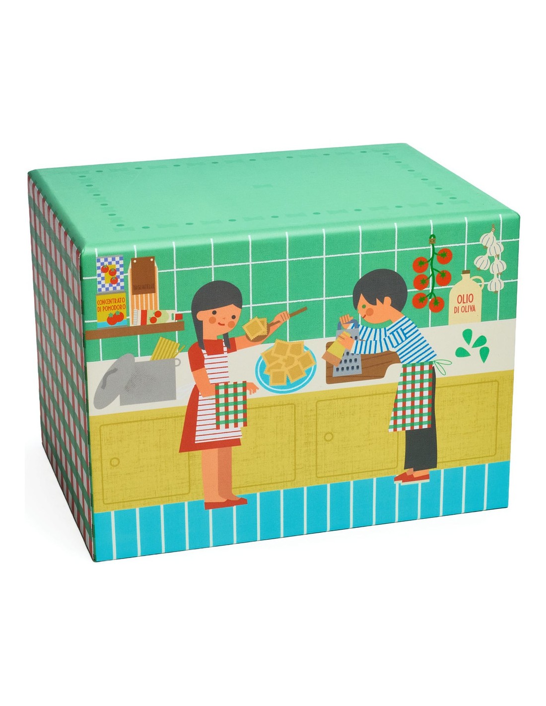 Chaque boîte s’ouvre sur une jolie scène illustrée d’enfants cuisinant dans une cuisine aux couleurs de leur pays, plongeant ainsi l’enfant dans l’ambiance gourmande et culturelle de chaque destination. Un set raffiné et convivial pour stimuler l’imagination et le goût du jeu gourmand !