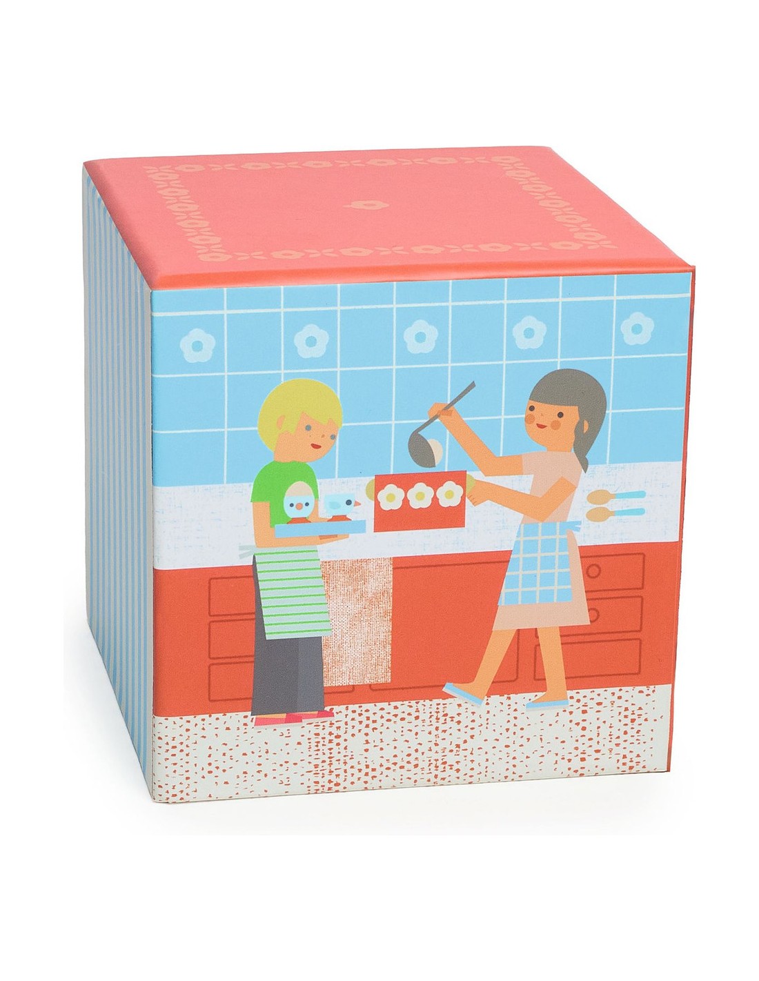 Les œufs à la coque, un régal ! Ce ravissant coffret d’accessoires en bois et feutrine invite les enfants à préparer un délicieux œuf à la coque accompagné de ses mouillettes. L’enfant pourra s’amuser à ouvrir son œuf, à le déposer dans son coquetier, à tremper les mouillettes. La jolie boîte illustrée d’une scène gourmande d'enfants dans leur cuisine crée une atmosphère chaleureuse et familiale.