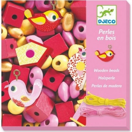 Coffret de 450 perles en bois de la marque Djeco, pour réaliser des bijoux sur le thème des oiseaux.