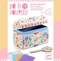 Un ravissant coffre à décorer avec plus de 150 mosaïques autocollantes et strass adhésifs à placer. Le faux fond s'ouvre à l'aide de la clé fournie et permet de cacher ses trésors les plus précieux…