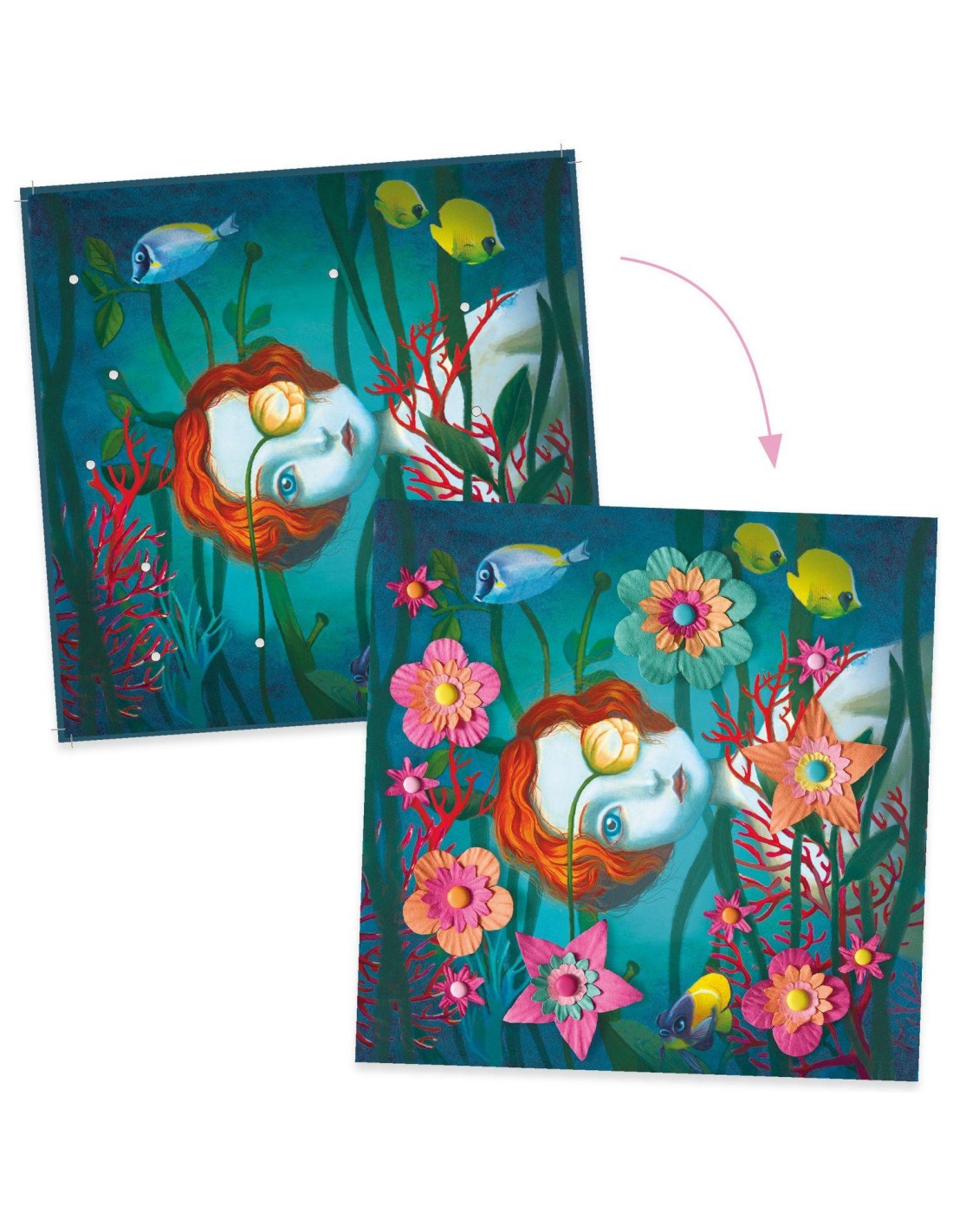 Pour compléter les tableaux, l’enfant dispose d’une multitude de corolles de papier qu’il assemble facilement grâce aux jolies attaches parisiennes colorées. De magnifiques fleurs de toutes sortes viennent embellir les portraits de 4 héroïnes sublimes et mystérieuses.