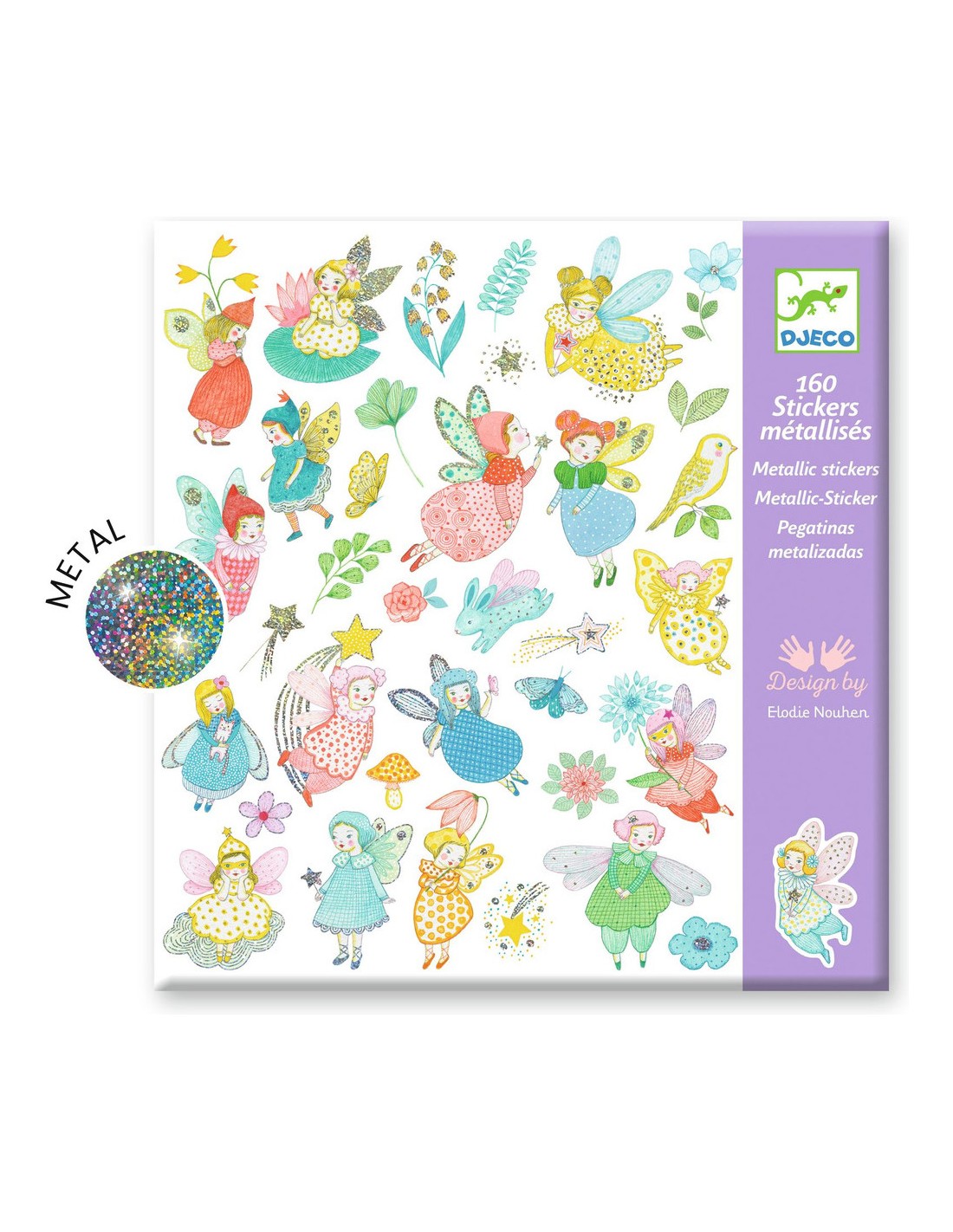 Une pochette de 160 stickers métallisés sur le thème indémodable des fées. Fillette aux ailes scintillantes, tendre lutine, poussière d'étoile ou fleur aux reflets magiques, l’enfant colle les nombreux stickers librement pour composer ses propres saynètes ou décorer ce qu’il souhaite !