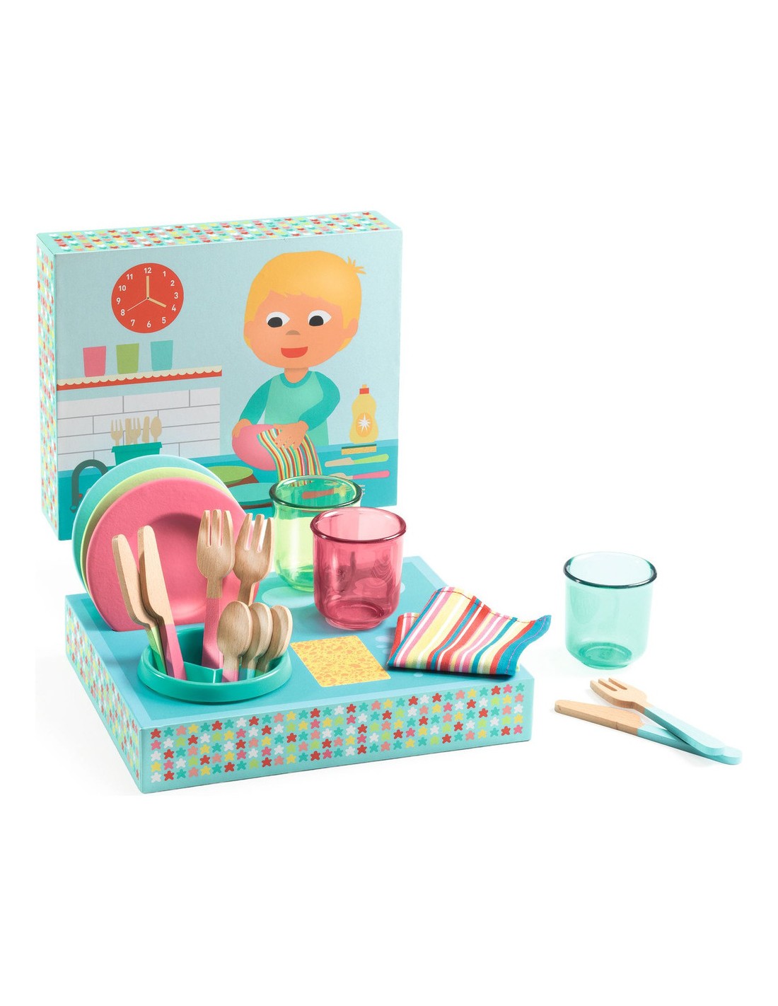 Un jeu malin et complet pour les enfants dès 3 ans, idéal pour le jeux d’imitation autour du repas et de la cuisine. Le set comprend couverts, verres et assiettes, tous rangés dans une boîte ingénieuse qui se transforme en égouttoir : après avoir lavé la vaisselle, l’enfant peut tout ranger en jouant et faire comme les grands… en s’amusant !
