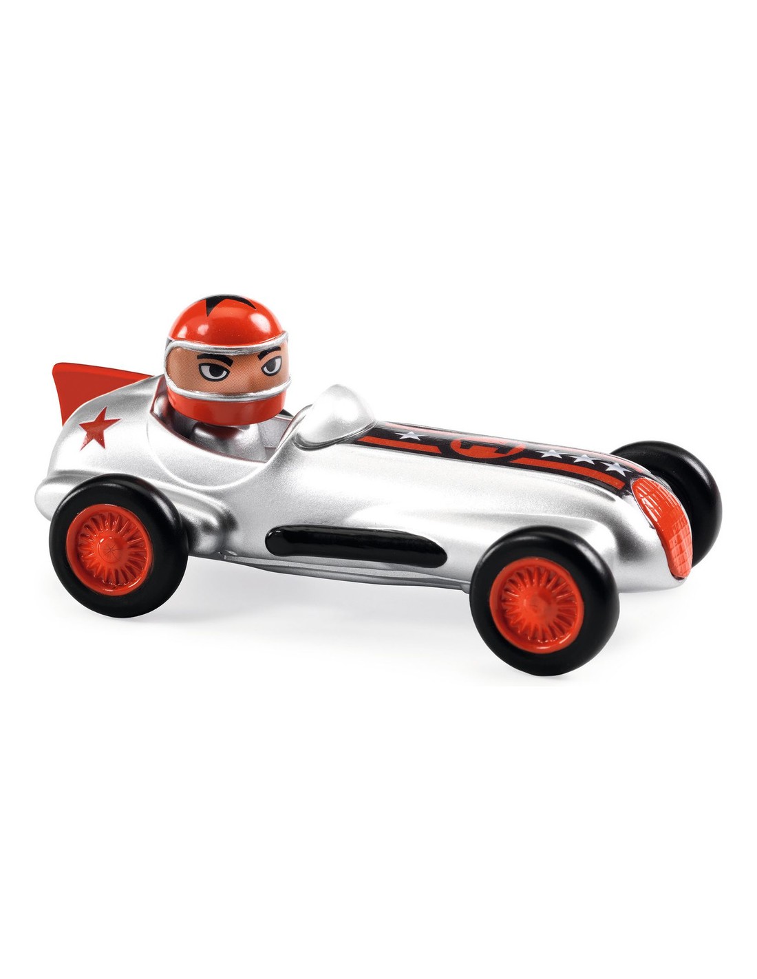 Taillée pour la vitesse, la Silver Super Speed file droit vers la victoire ! Sous son carénage argenté étincelant se cache un pilote audacieux, rapide et précis, toujours prêt à relever les défis les plus fous. Avec ses grandes roues et son design ultra-épuré, sans suspension pour maximiser la puissance, la Silver Super Speed dévore la piste, enchaîne les virages et promet des courses à sensations fortes à tous les petits aventuriers en quête d’adrénaline !