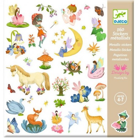 Une pochette de 160 stickers métallisés sur le thème de la fantasy. Lutins, fées, licorne et esprits de la forêt…