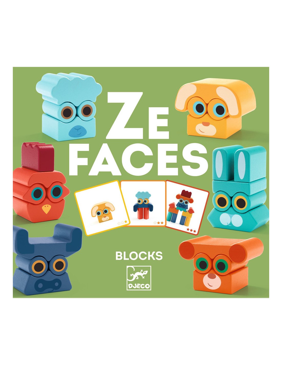 Ze Faces est un jeu en bois mêlant construction et repérage dans l’espace. L’enfant utilise les six portraits d’animaux en bois pour reproduire les modèles des cartes ou imaginer des combinaisons surprenantes en mélangeant les pièces. Avec 20 modèles répartis sur trois niveaux de difficulté, le jeu accompagne l’enfant dans l’identification des formes et des couleurs, tout en développant observation et habileté.