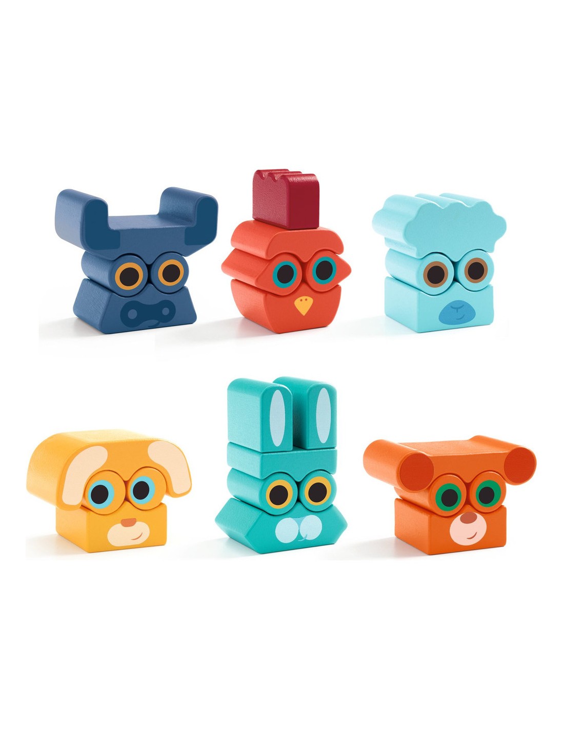 - 6 portraits d’animaux en bois pour créer, assembler et inventer à l’infini.