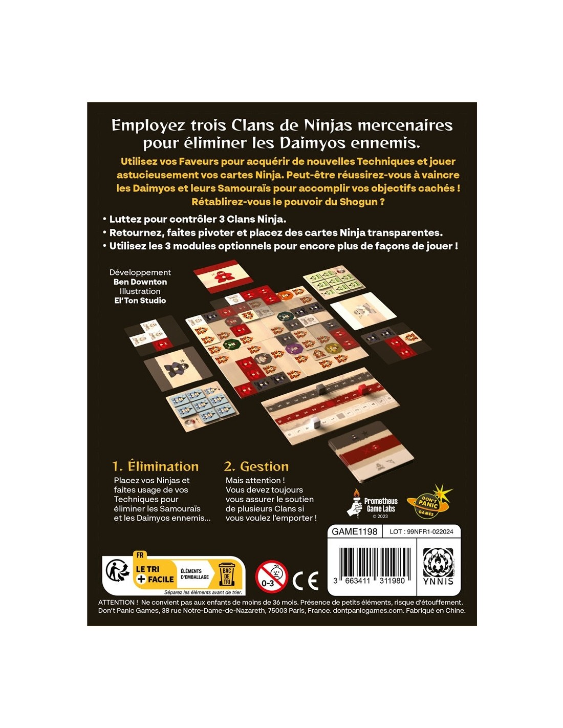 Utilisez vos Faveurs pour acquérir de nouvelles Techniques et jouer astucieusement vos cartes Ninja. Peut-être réussirez-vous à vaincre les Daïmyos et leurs Samouraïs pour accomplir vos objectifs cachés ! Rétablirez-vous le pouvoir du Shogun ?- Luttez pour contrôler 3 Clans Ninja