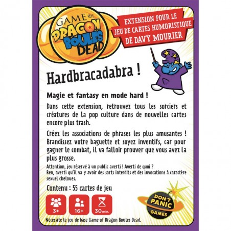 Dans cette extension, retrouvez tous les sorciers et créatures de la pop culture dans de nouvelles cartes encore plus trash. Créez les associations de phrases les plus amusantes ! Brandissez votre baguette et soyez inventifs, car pour gagner le combat, il va falloir prouver que vous avez la plus grosse.