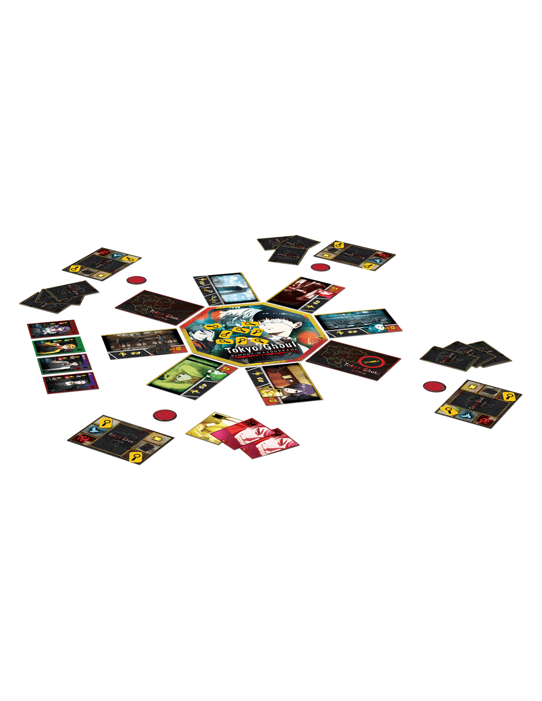 À Tokyo, sévissent des goules, monstres cannibales se nourrissant de chair humaine. Les humains sont des proies faciles mais les inspecteurs du redoutable Centre de Contrôle des Goules (Ccg) veillent. Leur mission : repérer et anéantir les goules ! Dans ce jeu de déduction et de bluff, incarnez 15 personnages de la série dont Kaneki, Touka, Juzo et Rize.