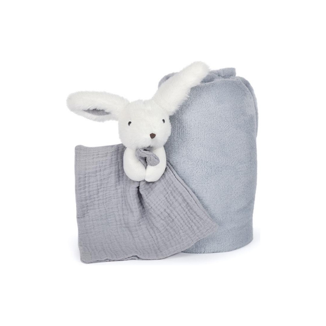 Superbe coffret cadeau naissance composé d'un plaid et d'un doudou lapin à offrir dès la naissance-Doudou et Compagnie Conçus pour rassurer bébé, confortables et protecteurs, ce Doudou lapin et ce plaid seront parfaits à la maison ou lors des sorties en famille, pour des promenades bien au chaud... Un cadeau de naissance à offrir pour l'arrivée de bébé.