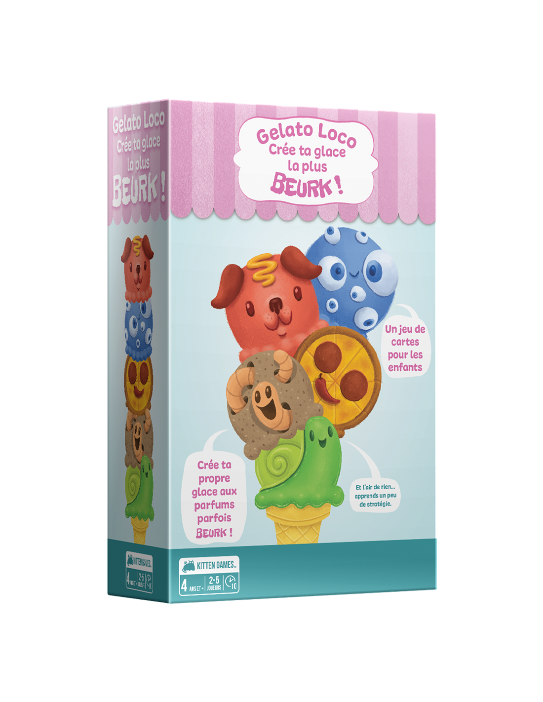 Le marchand de glaces vient d’arriver, mais aujourd’hui les parfums sont spéciaux, carrément beurk ! Soyez le premier à remplir votre cornet géant avec 9 boules différentes. À chacun de vos tours, piochez une boule de glace face cachée. Le dos est de trois couleurs différentes, le parfum au verso correspond forcément à l’une de ces couleurs, mais laquelle ?