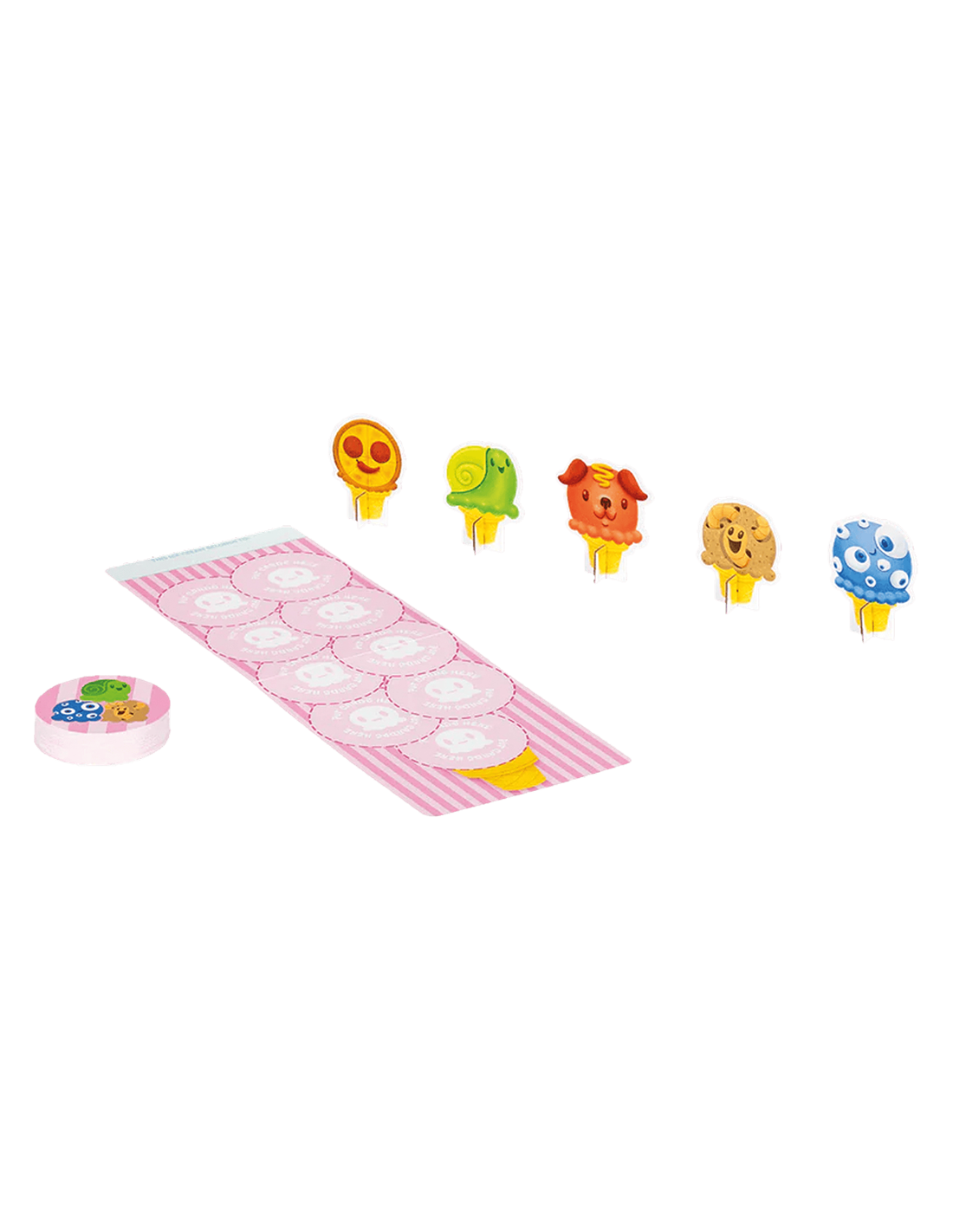 Si vous devinez bien, ramassez toutes les boules de glace de cette couleur, sinon c’est au joueur suivant. Un jeu de pari fun et addictif pour toute la famille et les enfants dès 4 ans. Contenu