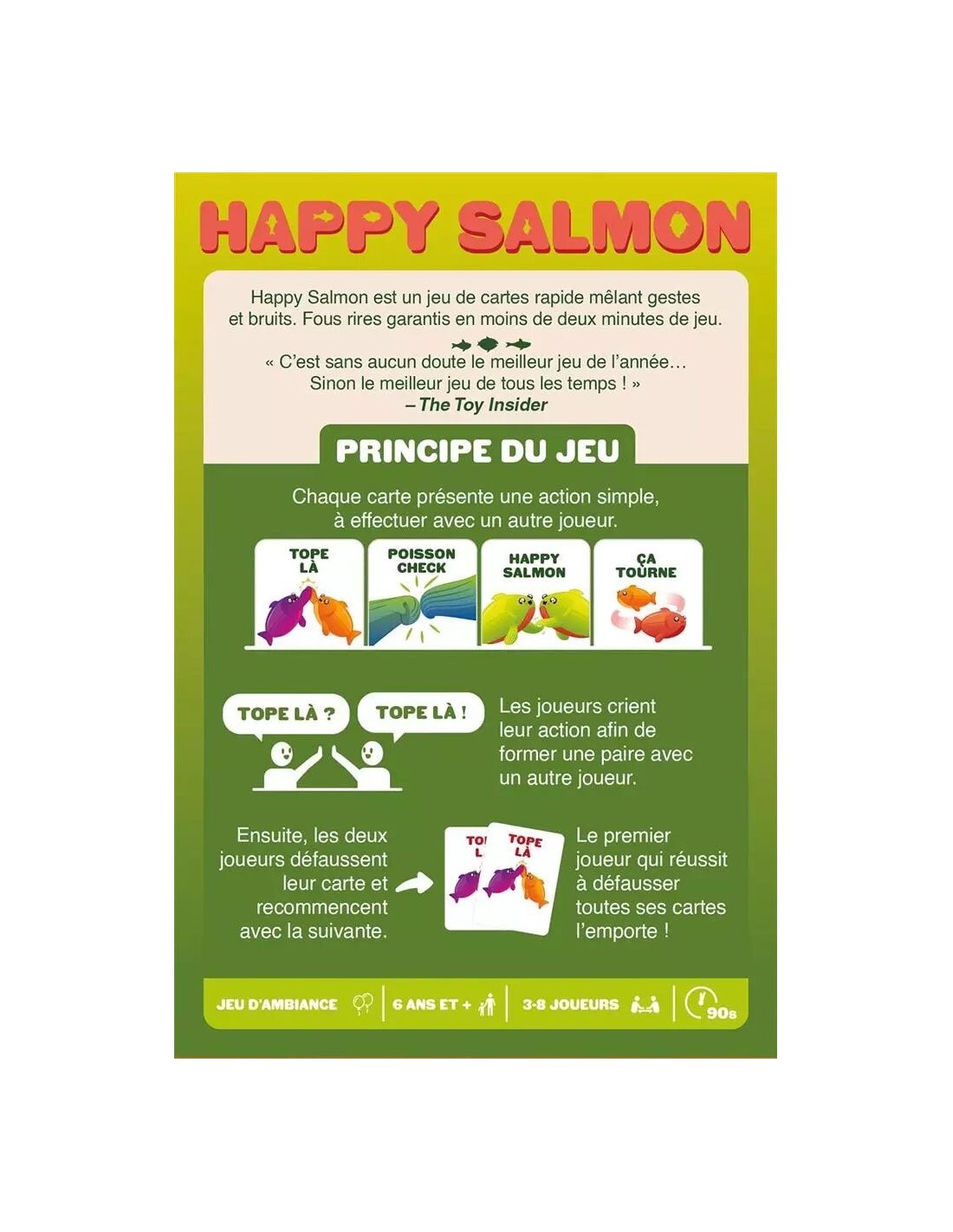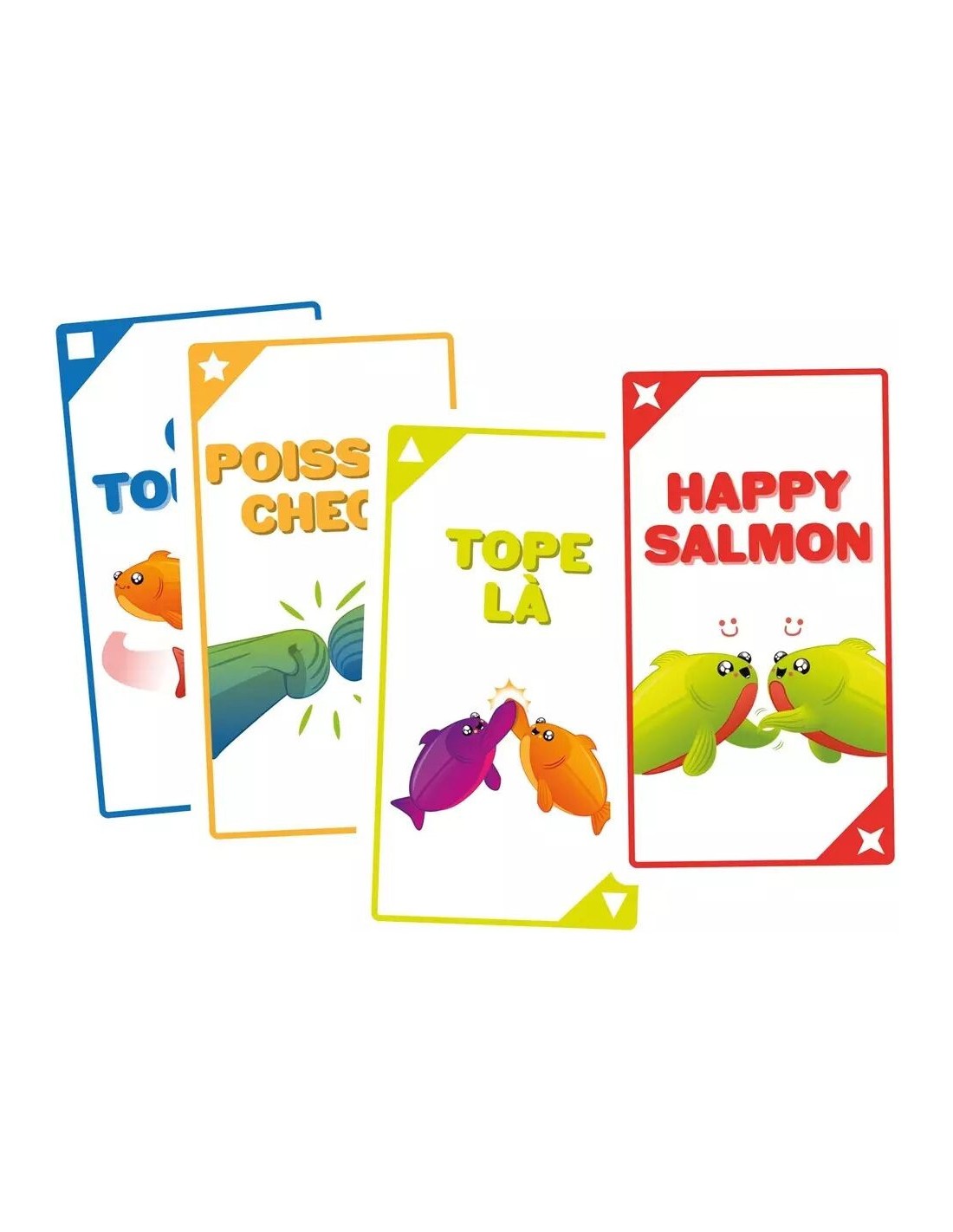 Happy Salmon est un jeu physique, rapide et explosif ! Faites de la place et débarrassez-vous de vos chaises. Le but ? Être le premier joueur à défausser toutes ses cartes.