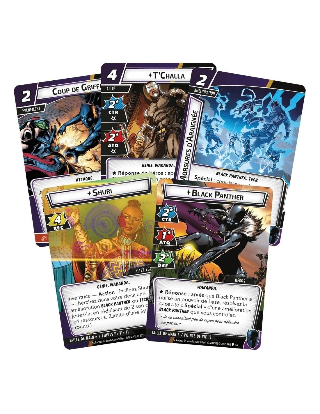 Chacune de ces améliorations peut être également défaussée pour déclencher de puissants effets. Jouez Aja-Adanna pour les remélanger dans votre deck afin que Shuri puisse les utiliser à nouveau.