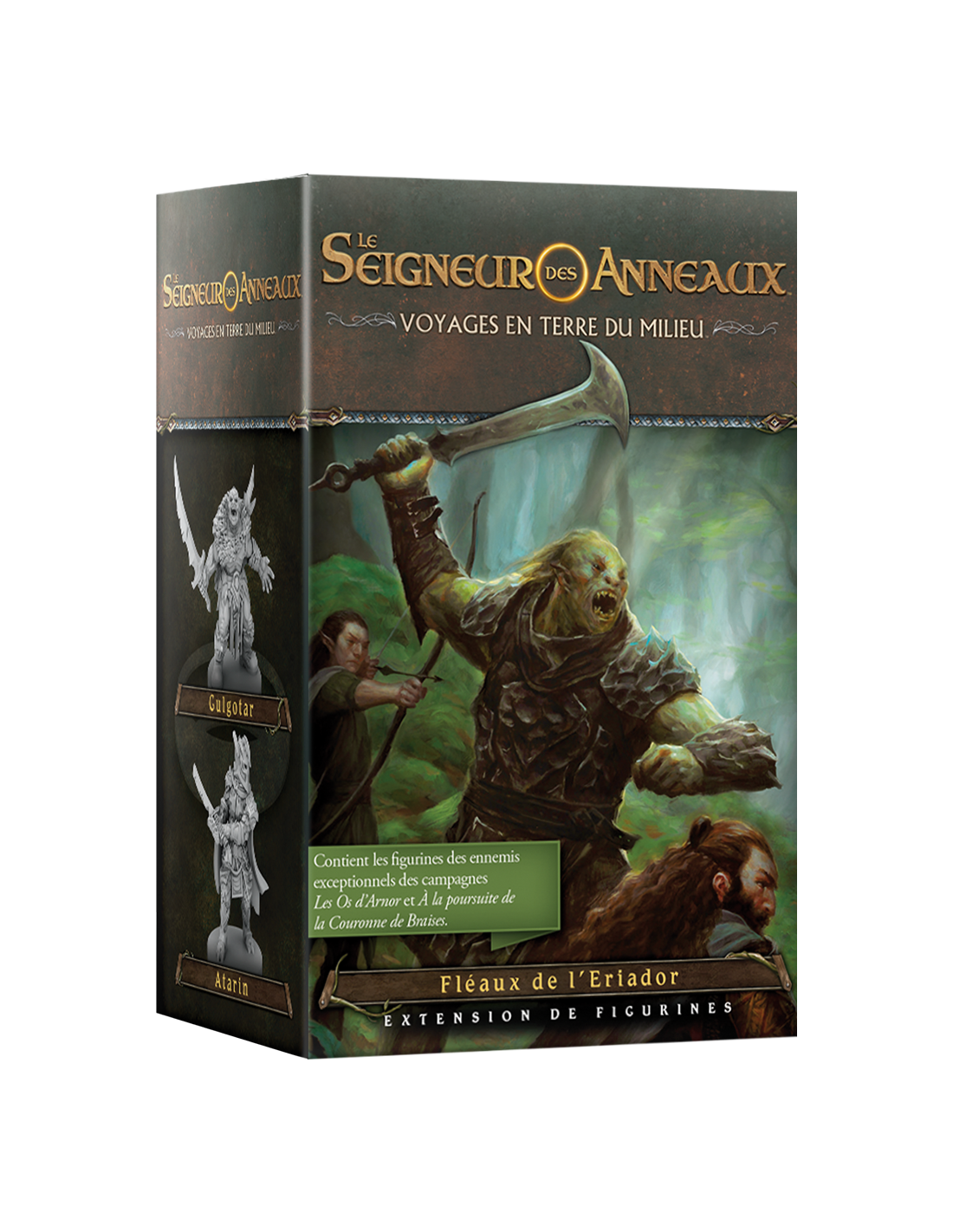Cette extension pour Le Seigneur des Anneaux : Voyages en Terre du Milieu contient trois magnifiques figurines, en plastique non-peint, qui représentent les ennemis exceptionnels que vous affronterez dans les campagnes, Les Os d'Arnor et À la Poursuite de la Couronne de Braises, ainsi que six nouvelles trouvailles et trois nouveaux titres.
