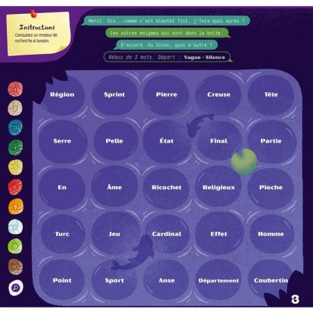 Rebondissez de mots en mots par association d'idées pour résoudre le rébus final ! Un jeu d'énigmes original, à jouer seul ou en collaborant, qui triture les neurones et développe les zygomatiques !