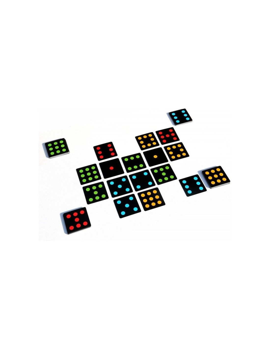 Contenu : 72 cartes carrées de 4 couleurs différentes (2 séries de 1-9 par couleur), Règle du jeu