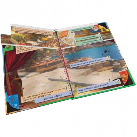 Entre dans l'univers du film "Pattie et la colère de Poséidon" et crée ta propre histoire : à chaque page coupée en trois, tu devras faire un choix. Ouvre le livre et choisis le personnage que tu souhaites incarner : Pattie la souris maline et curieuse, Sam le matou passionné de théâtre ou Chickos le baroudeur des airs?