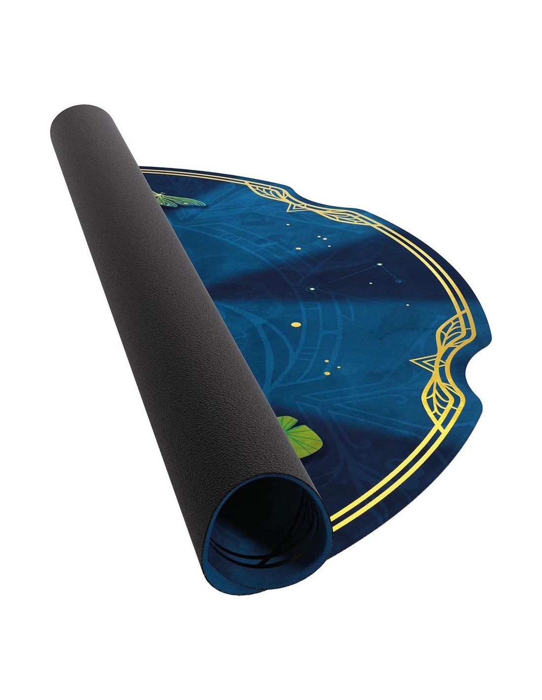 Ce tapis de jeu moelleux de 2 mm d'épaisseur est doté d'un emplacement spécialement conçu pour les cartes. Outre son imprimé éclatant et sa conception de haute qualité, il est orné de détails dorés et du logo Take Time.