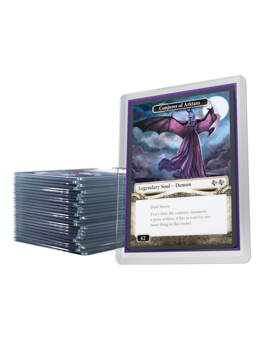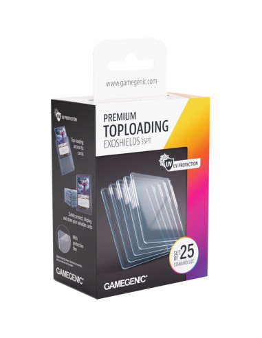 Les Toploading Exoshields Gamegenic sont des protège-cartes rigides de qualité premium, ultra-transparents et spécialement conçus pour les cartes au format standard.Le plastique épais enveloppe parfaitement la carte, la garde propre et la protège contre les dommages. Les Toploading Exoshields sont rigides, durables et dotés d’une protection Uv, ce qui les rend idéaux pour de très nombreuses utilisations.